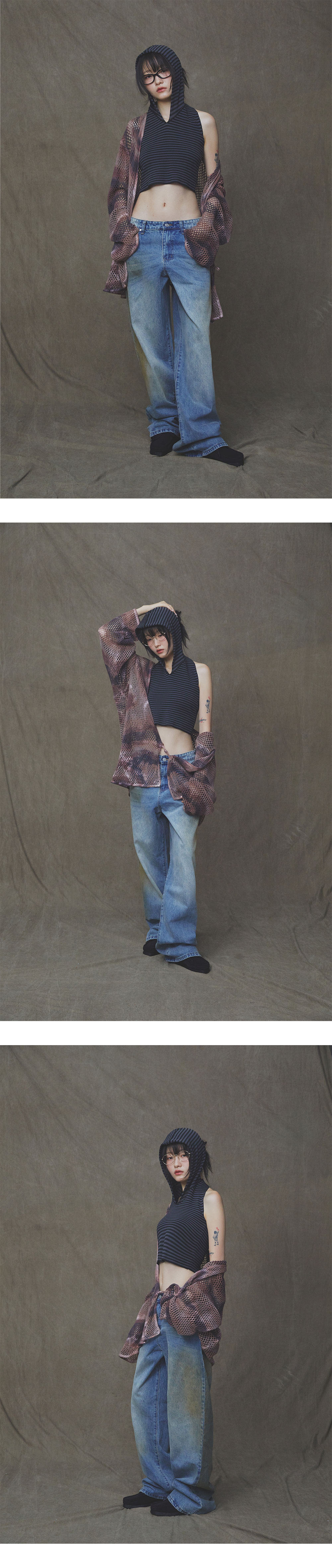 바스켓케이스 랙스 배기 데님 머드 워시 블루 더트 - 25SS
