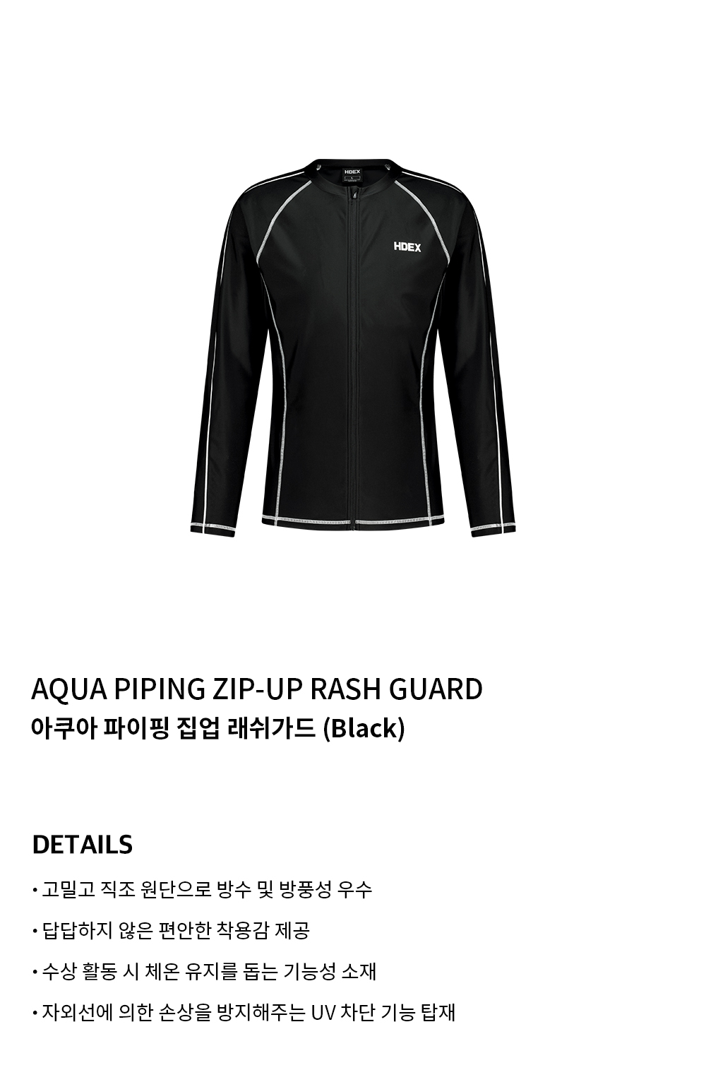 에이치덱스 아쿠아 파이핑 집업 래쉬가드 블랙