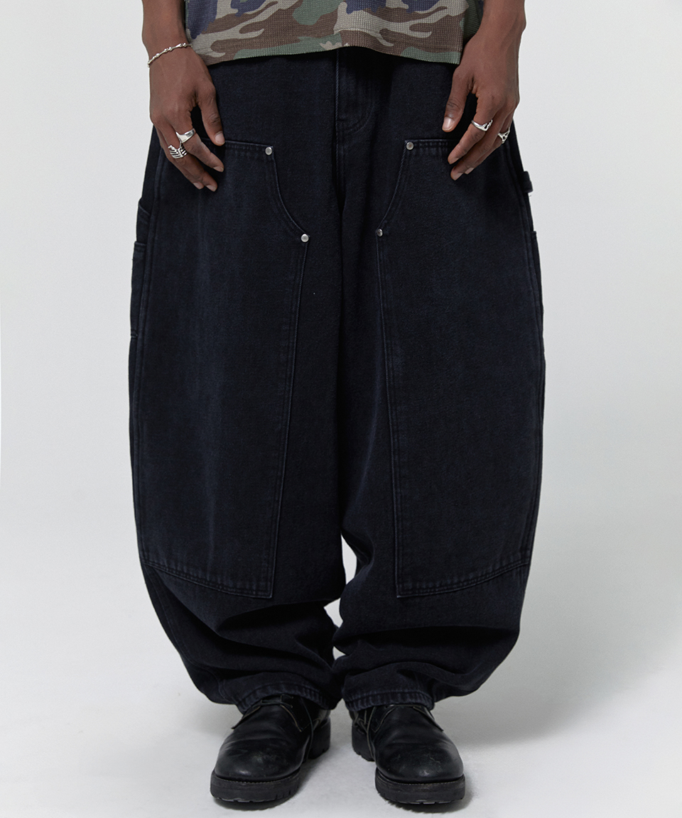 스웨이드 커브드 더블니 팬츠 블랙