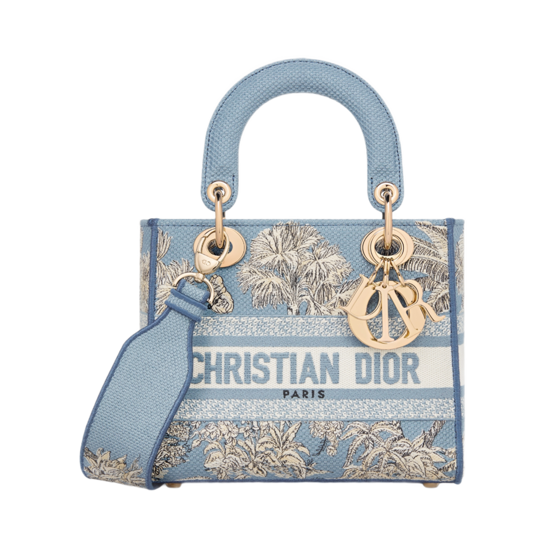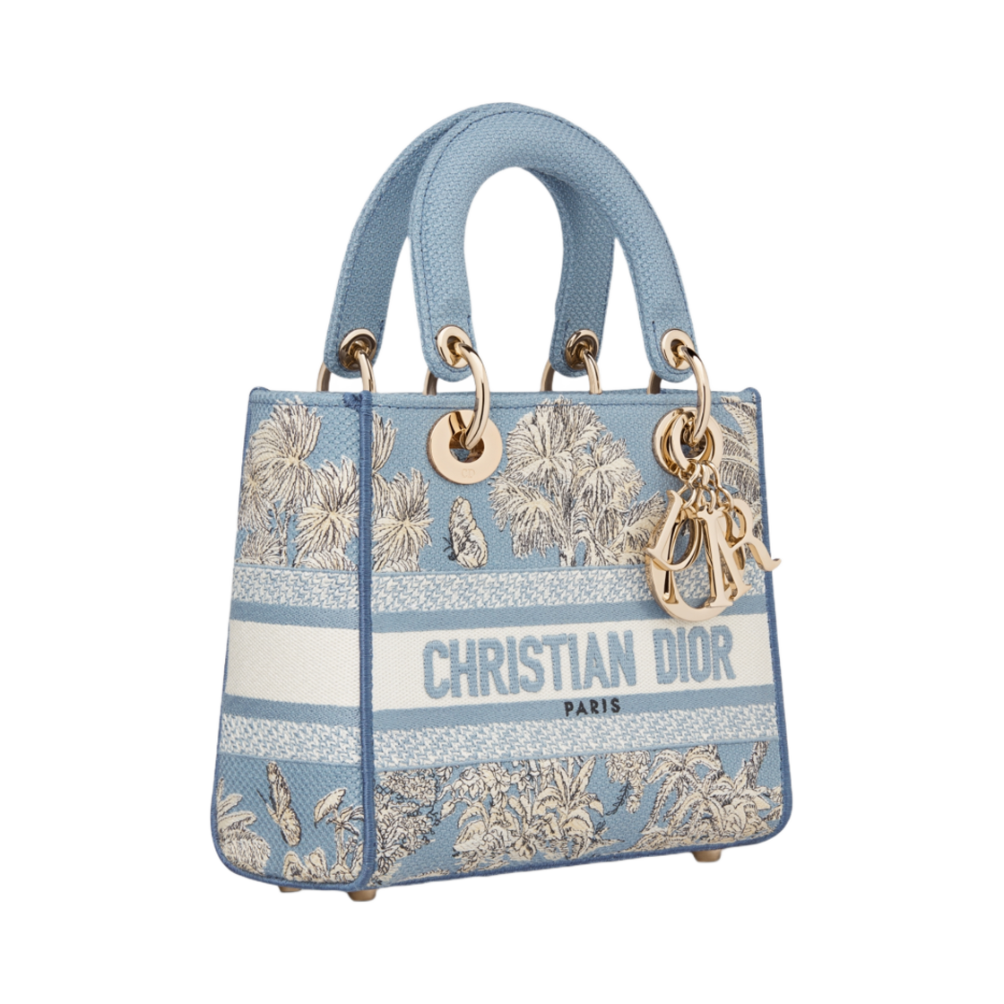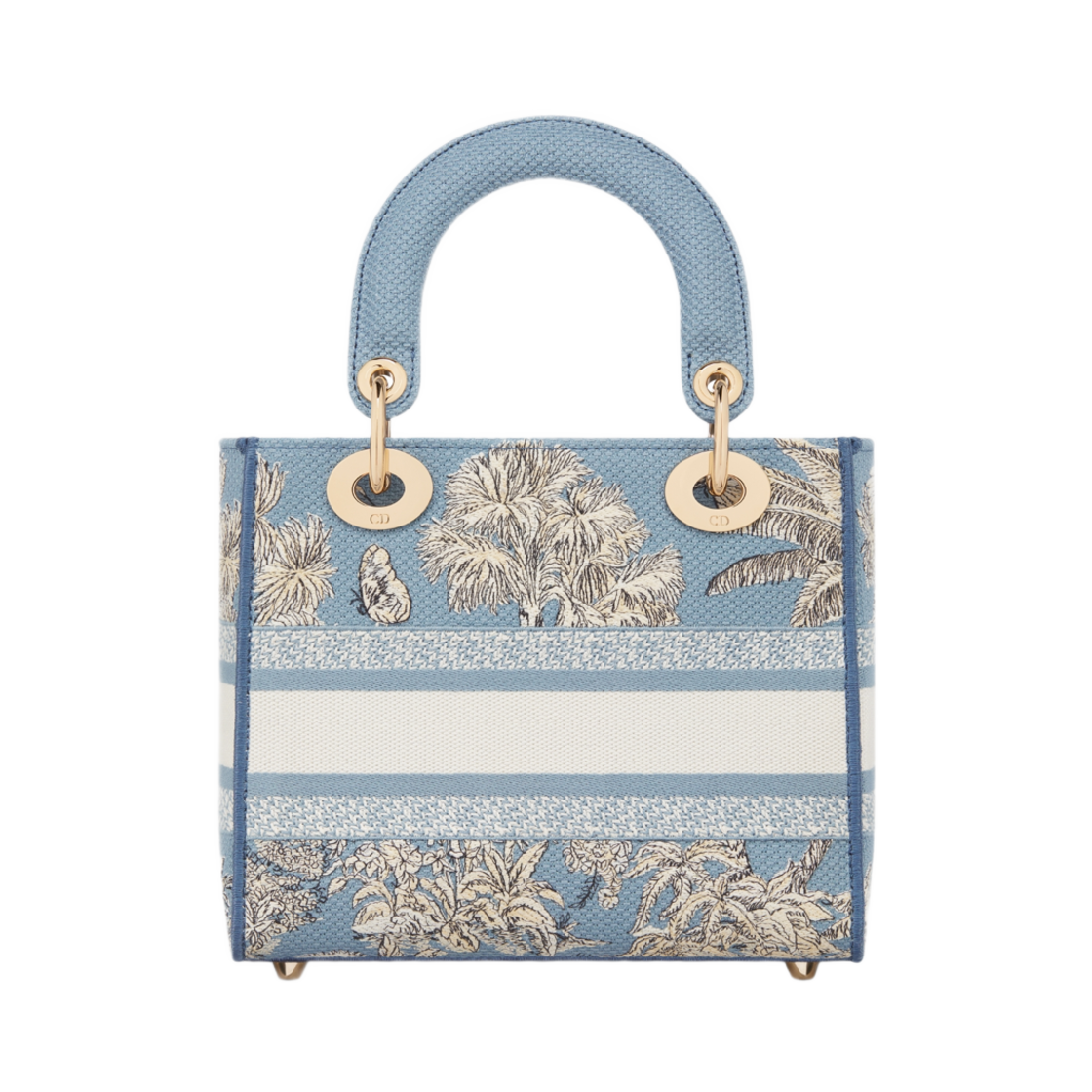 Dior Dioriviera Lady D-Lite Small Bag Toile De Jouy Palms Embroidery Celestial Blue White