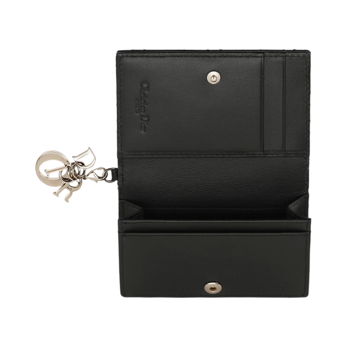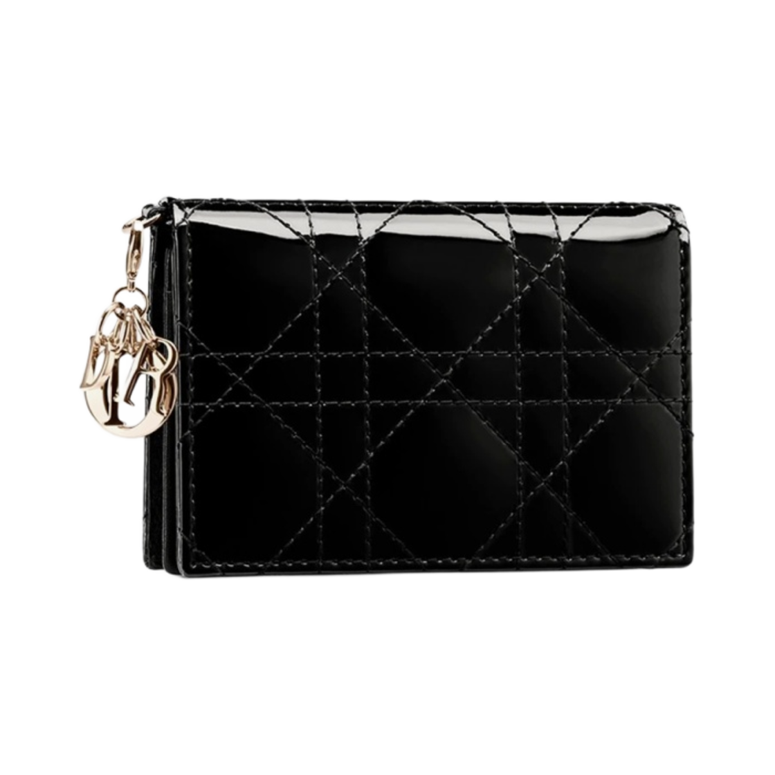 Dior Lady Flap Card Holder Patent Cannage Calfskin Black
