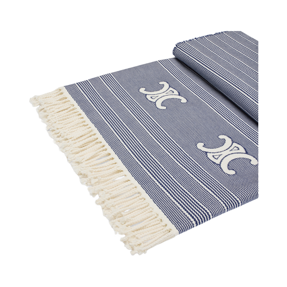 Celine Triomphe Fouta in Striped Cotton Off White Navy