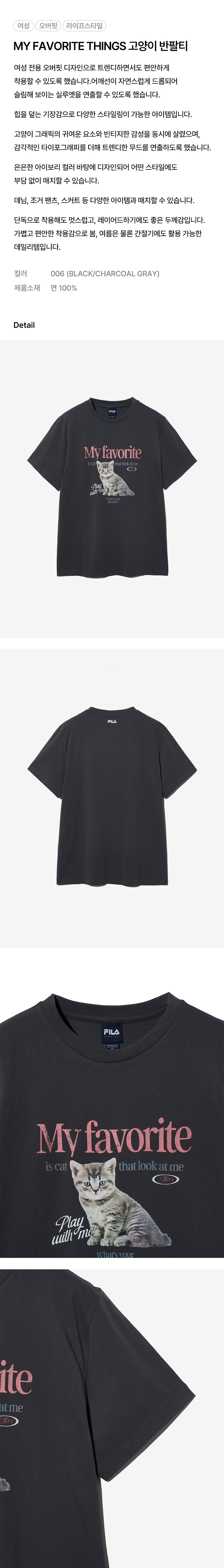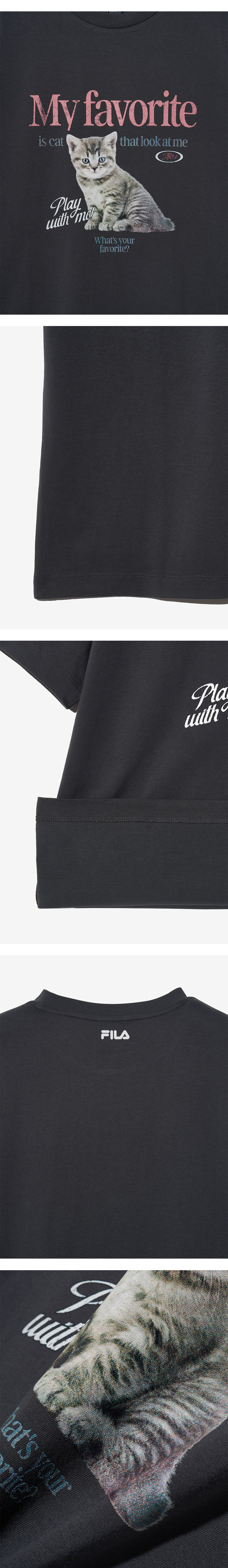 휠라 [MY 티셔츠] 오버핏 고양이 티셔츠 차콜