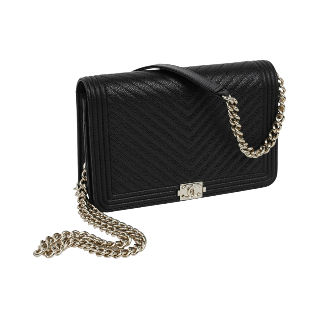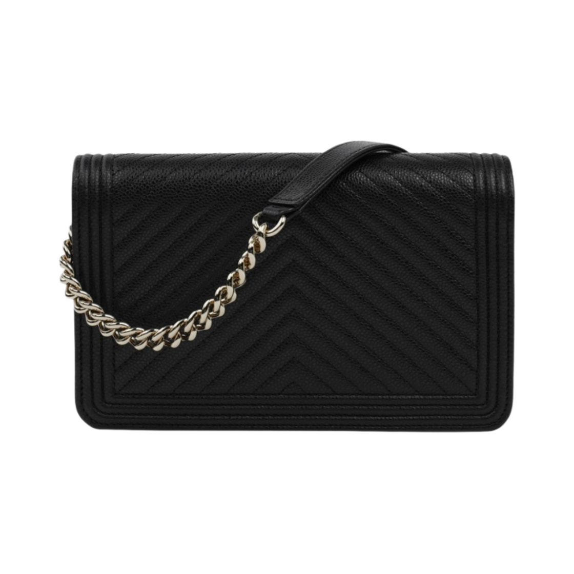샤넬 보이 샤넬 체인 지갑 그레인드 카프스킨 & 골드 메탈 블랙