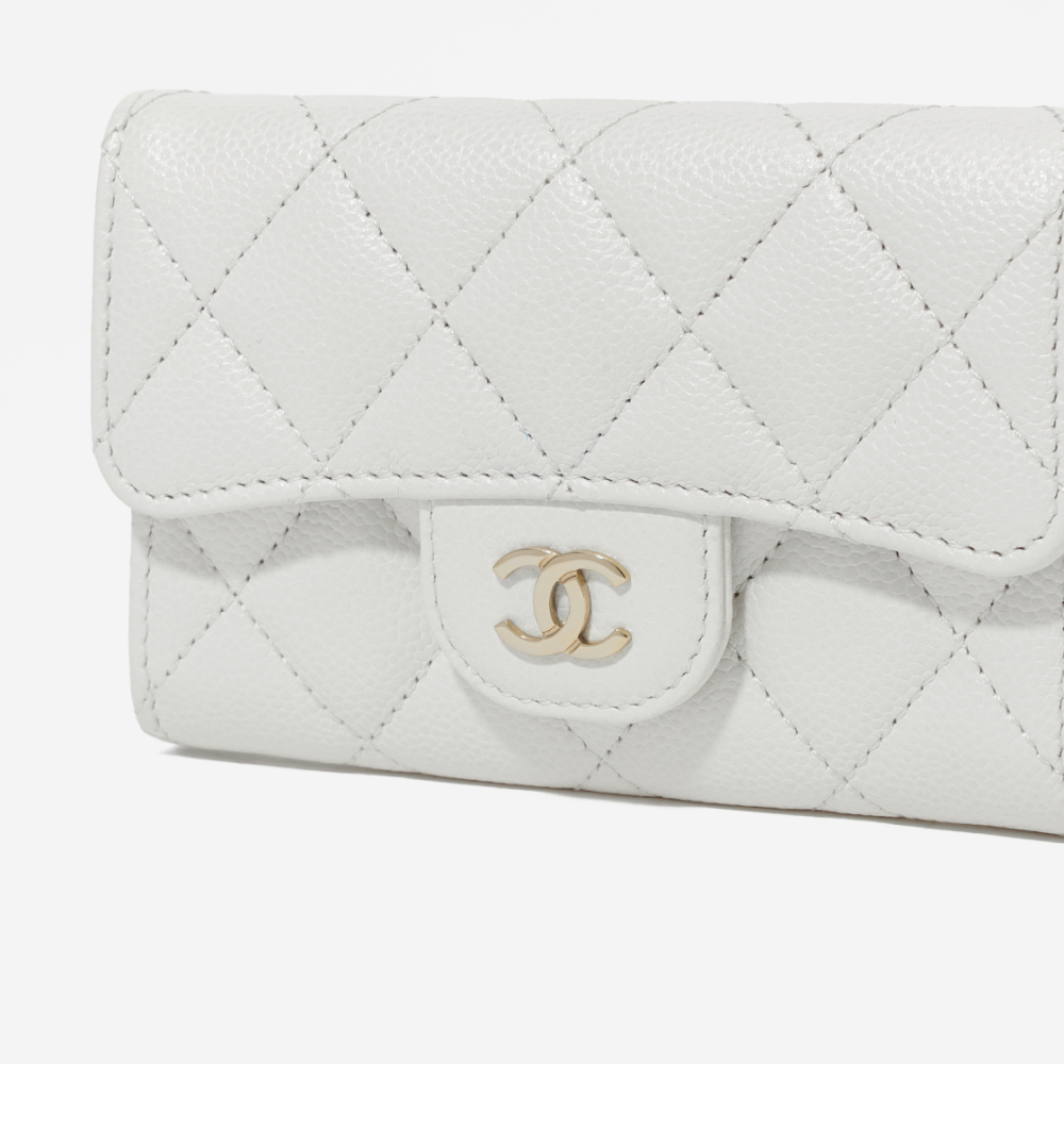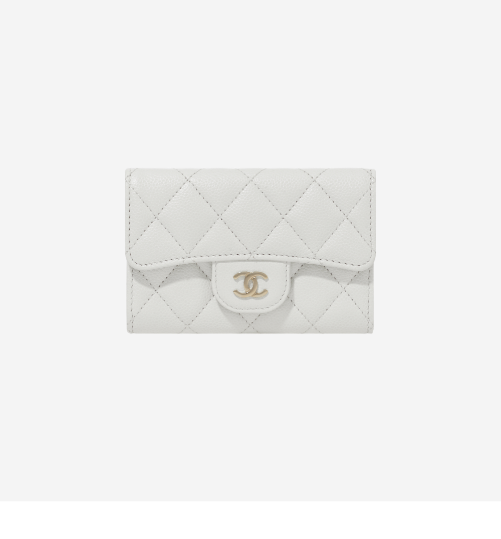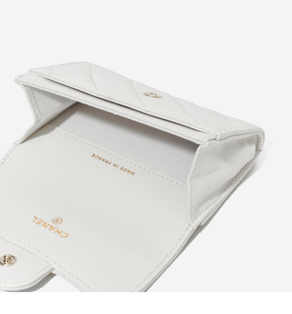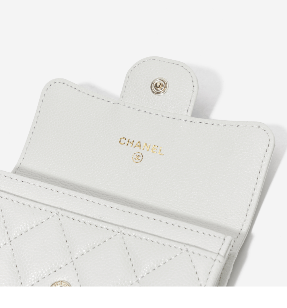 샤넬 클래식 카드 홀더 그레인드 샤이니 카프스킨 & 골드 메탈 화이트
