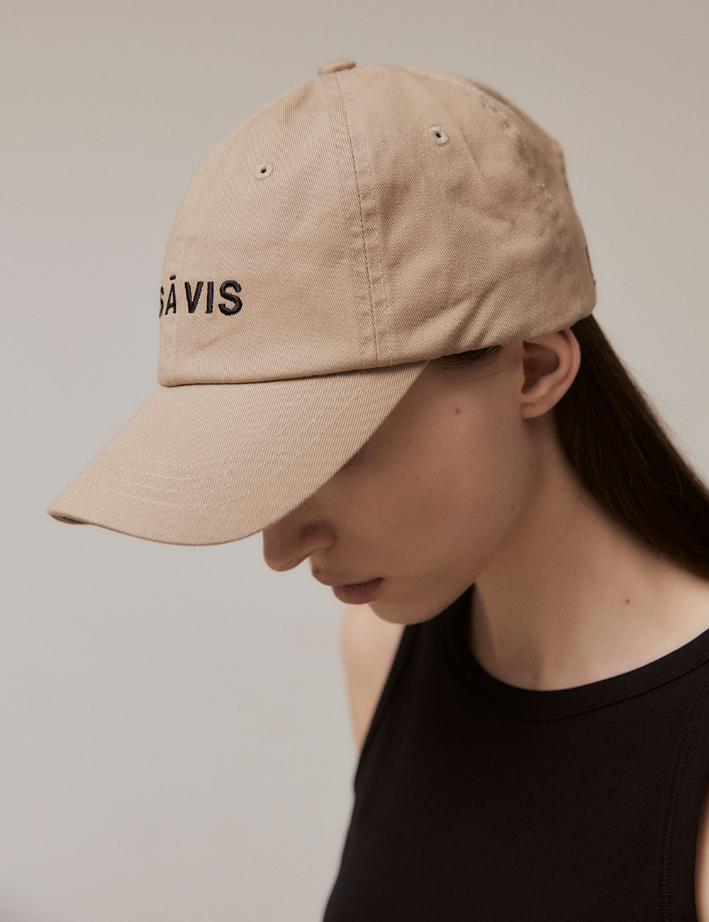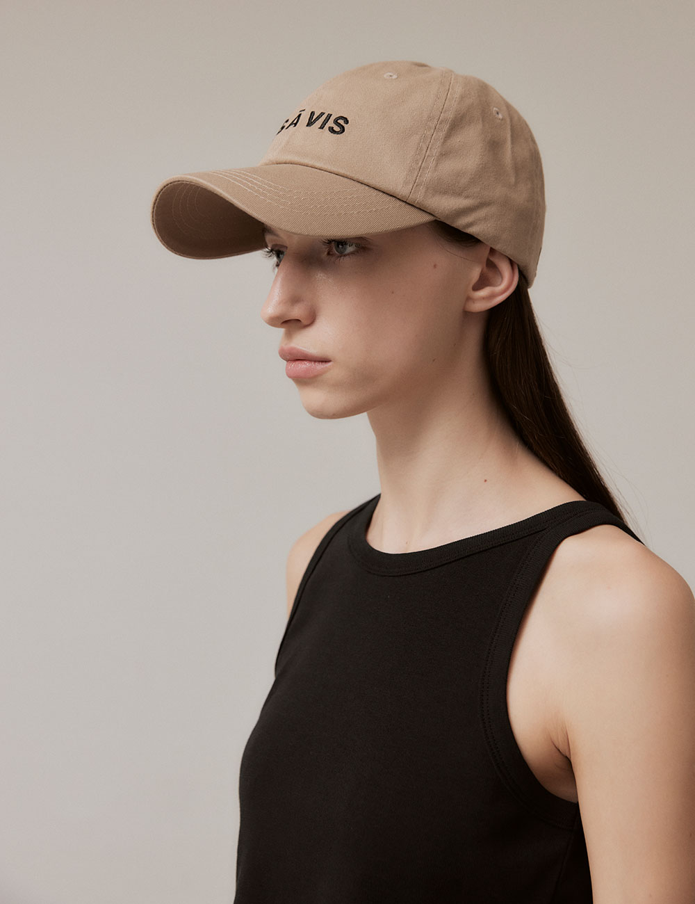 - 코튼 트윌 소재를 사용한 베이직 CAP - 정면: VIS Ā VIS 자수 / 뒷면: V 자수 디테일 - 스트랩 : 조절가능