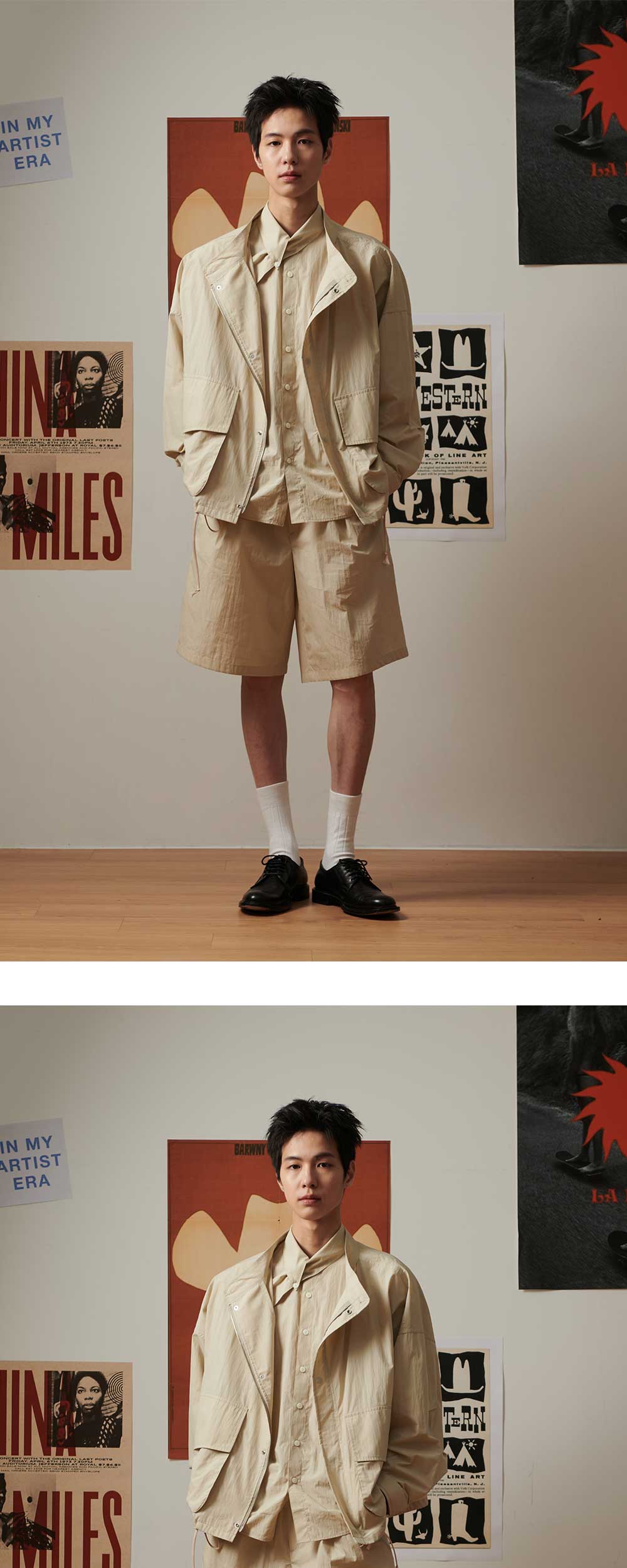 ㆍ한정 수량으로 제작된 컬렉션 라인의 점퍼 ㆍ고밀도의 면60수 코마사와 나일론 혼방 소재로 럭셔리한 무드를 전달 ㆍ은은한 광택과 단단한 밀도, 구김이 적고 매우 가벼운 착용감 선사 ㆍ소매 밴딩 조절, 밑단 스트링 디테일로 스타일링에 따른 다양한 무드 연출 가능 ㆍ입체 포켓 디테일이 유니크함과 실용성을 더함 ㆍYKK 히든 돗도,지퍼를 사용하여 내구성이 뛰어남 ㆍ텐타가공으로 세탁 후 변형 최소화 ㆍ고밀도 침수의 자수 아트웍 디테일 ㆍ카라 디테일 반팔 셔츠, 스트링 와이드 하프 팬츠와 SET-UP으로 연출 가능 ㆍ유니섹스 상품으로 제작