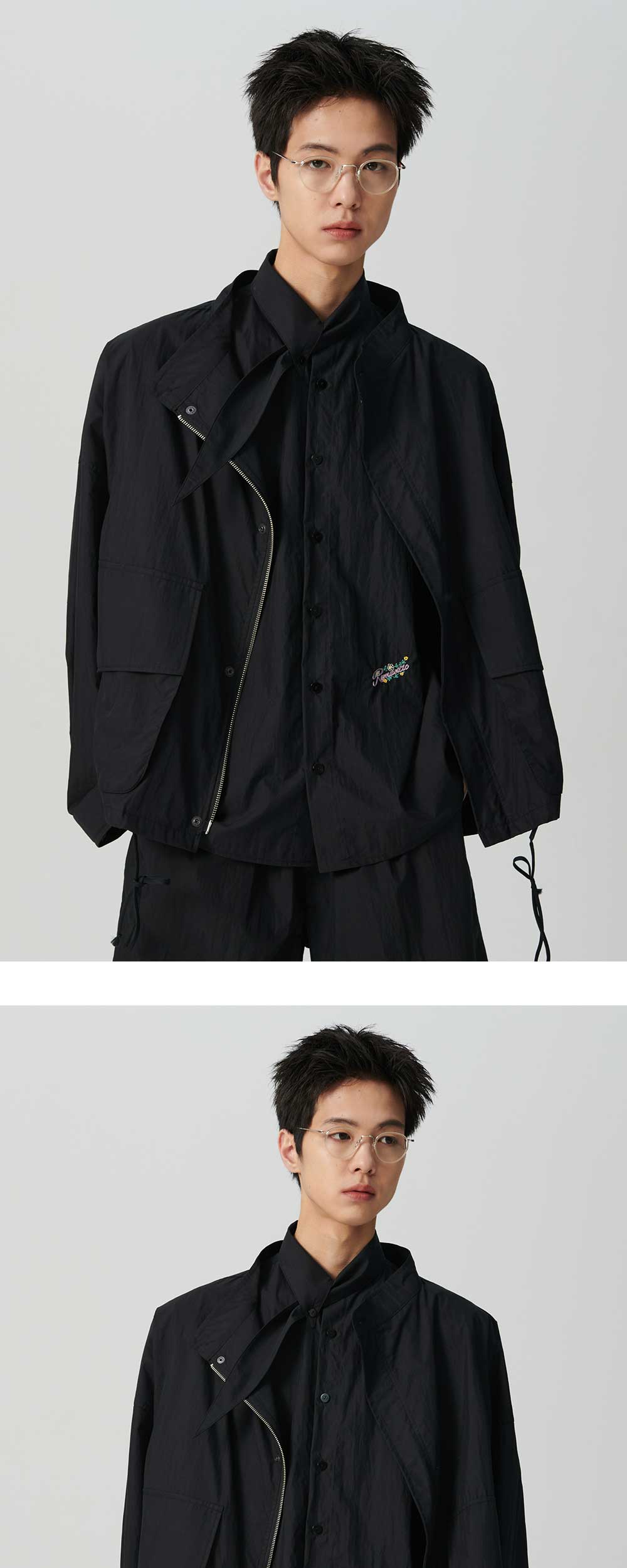 ㆍ한정 수량으로 제작된 컬렉션 라인의 점퍼 ㆍ고밀도의 면60수 코마사와 나일론 혼방 소재로 럭셔리한 무드를 전달 ㆍ은은한 광택과 단단한 밀도, 구김이 적고 매우 가벼운 착용감 선사 ㆍ소매 밴딩 조절, 밑단 스트링 디테일로 스타일링에 따른 다양한 무드 연출 가능 ㆍ입체 포켓 디테일이 유니크함과 실용성을 더함 ㆍYKK 히든 돗도,지퍼를 사용하여 내구성이 뛰어남 ㆍ텐타가공으로 세탁 후 변형 최소화 ㆍ고밀도 침수의 자수 아트웍 디테일 ㆍ카라 디테일 반팔 셔츠, 스트링 와이드 하프 팬츠와 SET-UP으로 연출 가능 ㆍ유니섹스 상품으로 제작