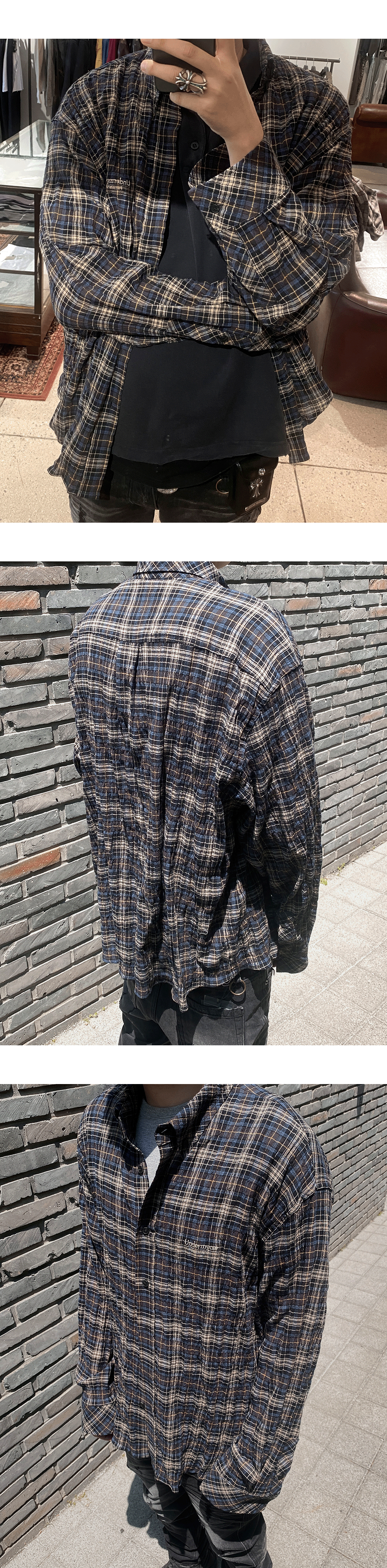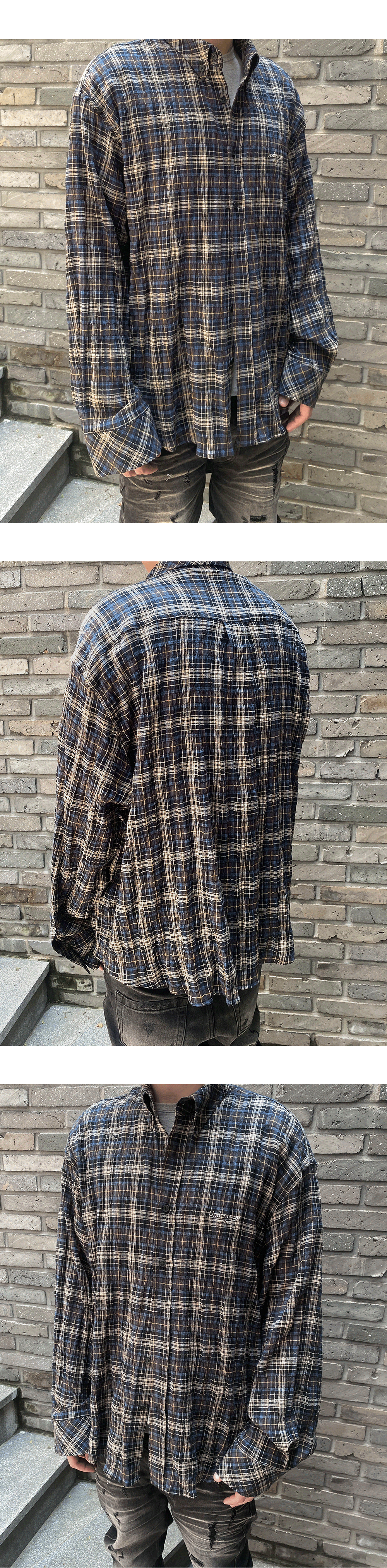 언더마이카 무.115 오리지널 로고 베이직 롱 슬리브 체크 셔츠 블랙 네이비