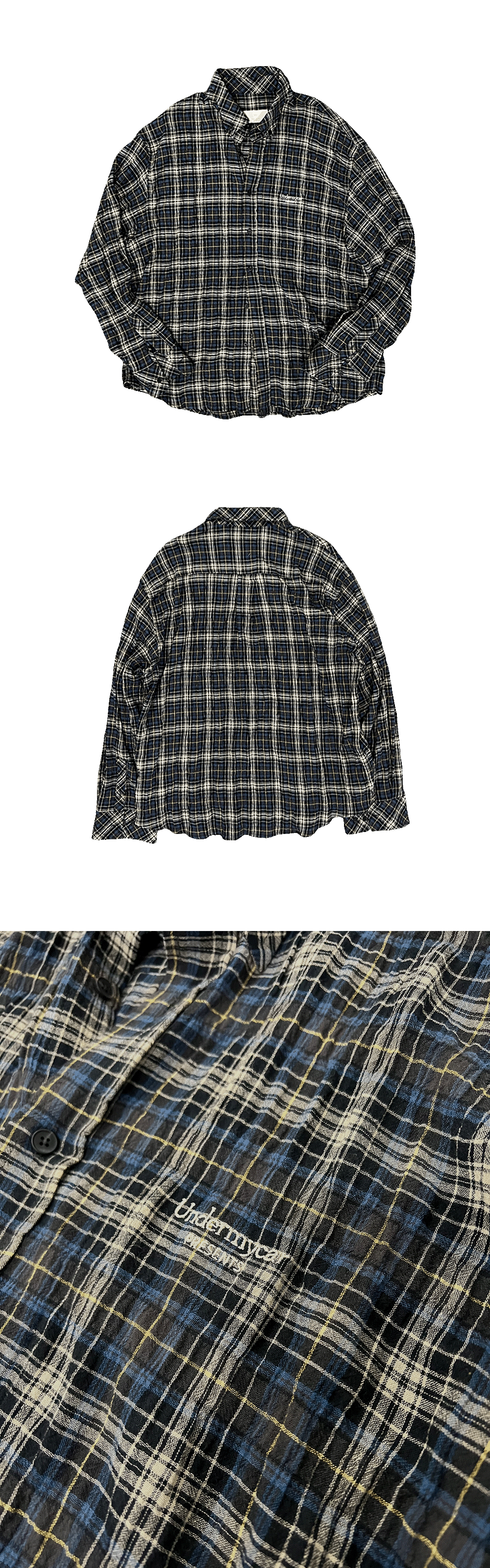 Undermycar Mu.115 Original Logo Basic Long Sleeve Check Shirts Black Navy