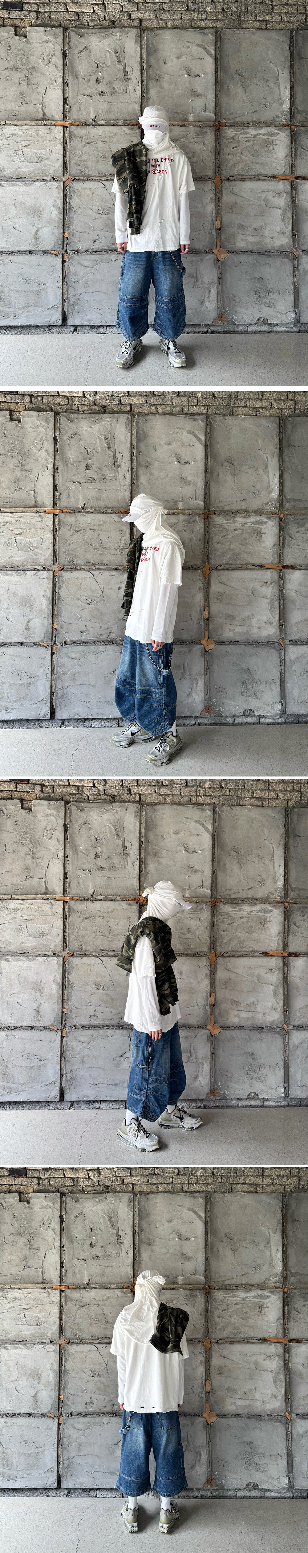 Fabric : 100% Cotton - 버뮤다 핏 - 무릎 절개 및 다트 - 디스트로이드 및 캣 워싱 - 지퍼 주머니 - 카펜터 디테일 - 허리 조절 비조 - 시그니쳐 스냅 - Zipper YKK 社 • 제조국 : 대한민국 • 세탁 방법 : 찬물 세탁 권장, 건조기 사용 금지 Size Guide (단위 CM) M : 허리 41, 허벅지 38, 밑위 35, 엉덩이 57, 밑단 34, 총장 71 L : 허리 44, 허벅지 40, 밑위 36, 엉덩이 59, 밑단 35, 총장 72