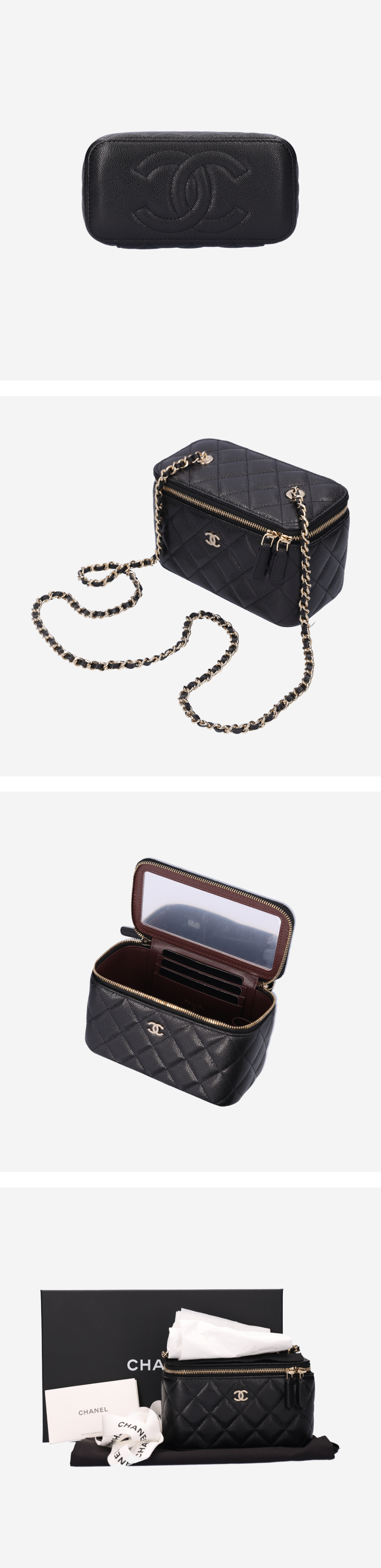 샤넬 AP1341 클래식 스몰 베니티 체인 코스메틱 케이스 그레인드 카프스킨 블랙 금장
