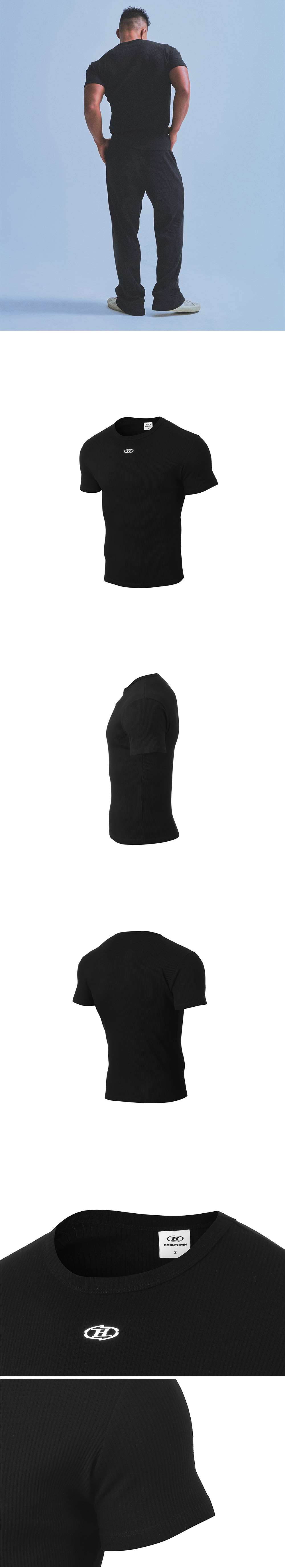 [DETAILS] * 리브드 B 펜던트 머슬핏 티셔츠 - 코튼,스판 골지 - B 펜던트 로고 - 잦은 세탁에도 늘어남 없는 어깨 모빌론 테이핑 - 머슬핏 Material : Cotton 97%, Polyurethane 3% Fitting : TJ 2 Size, 172cm, 74kg
