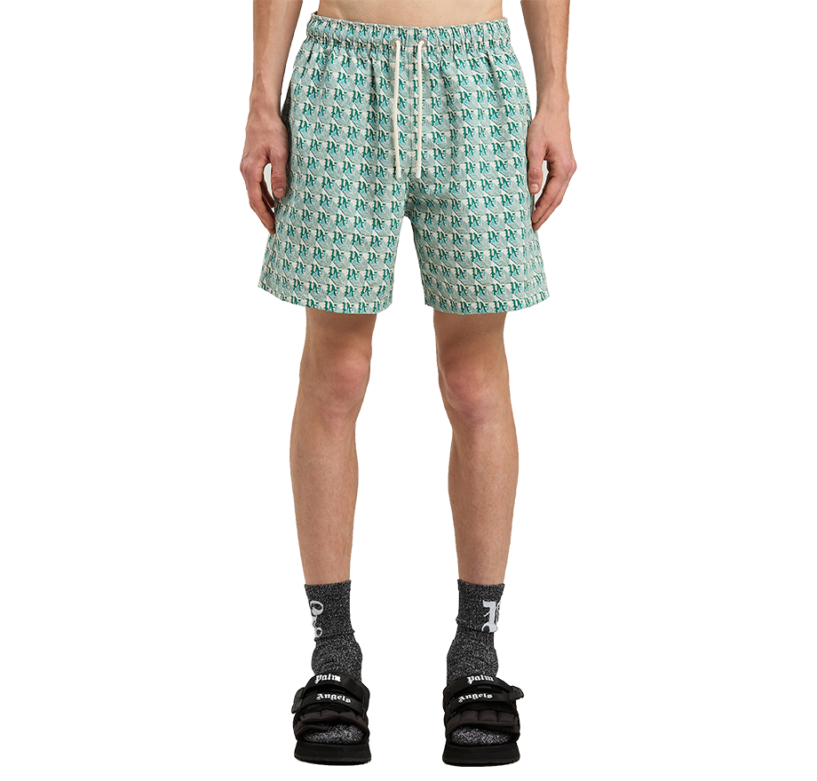 Palm Angels Pa Diamonds Swimshorts Green - Ivory