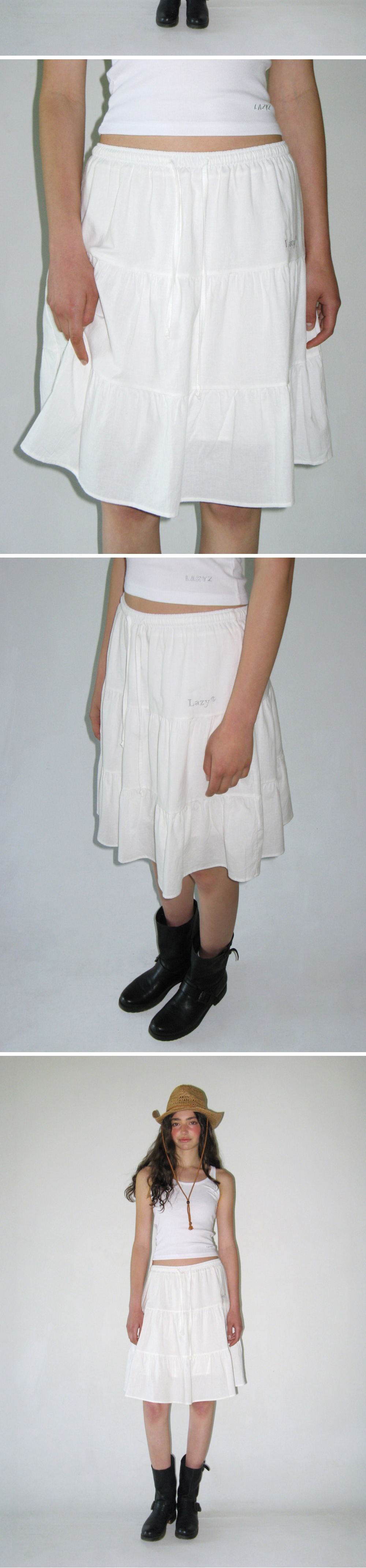 LAZYZ Lazy Cang Cang Shirring Half Skirt White