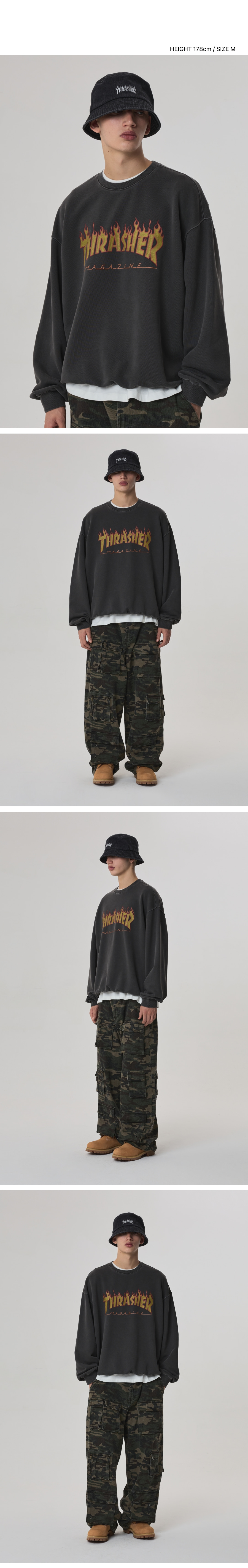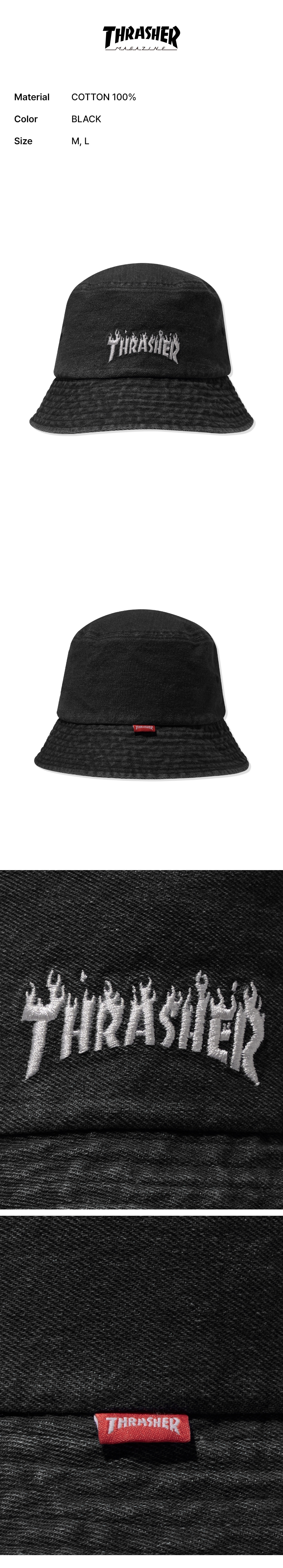 트레셔 플레임 데님 버킷햇 블랙