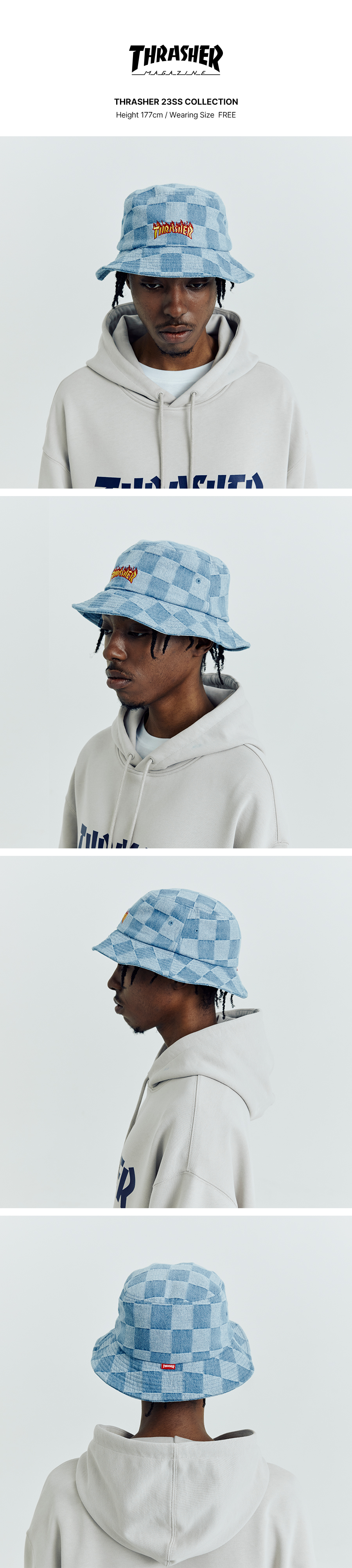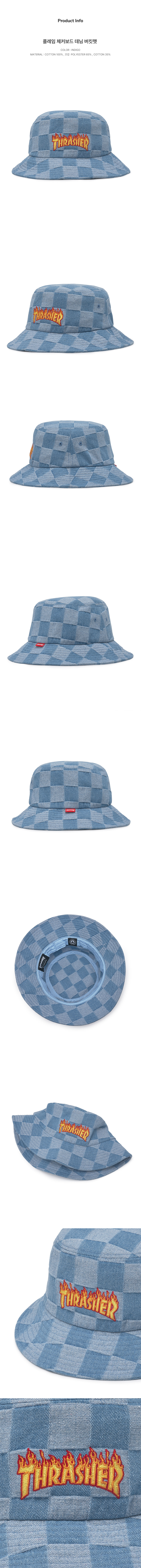 트레셔 플레임 체커보드 데님 버킷햇 인디고