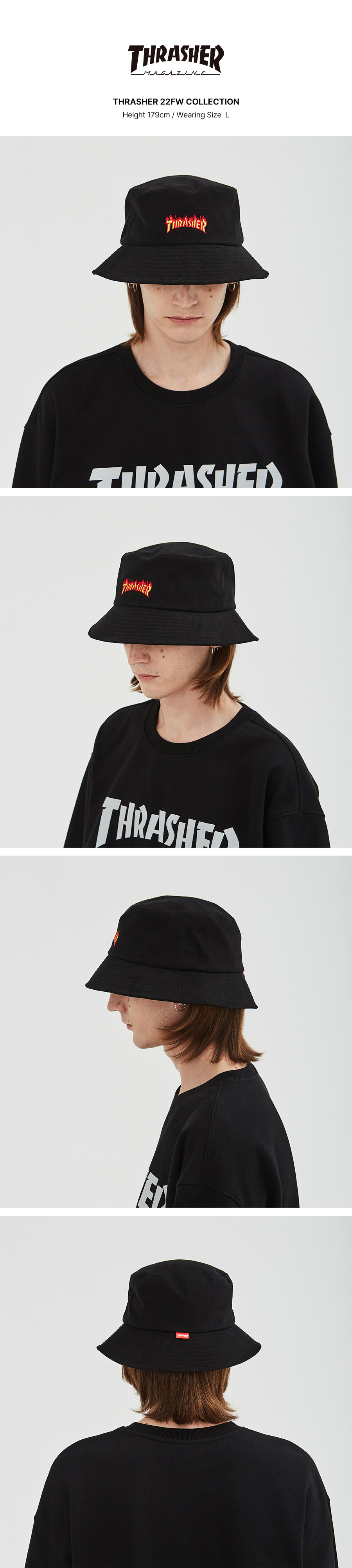 트레셔 플레임 로고 버킷햇 블랙