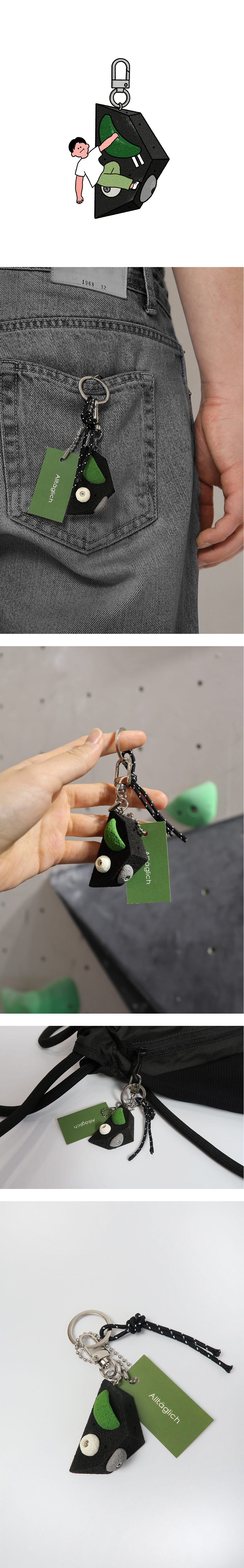 VOLUME HOLD KEYRING은 클라이밍에서 루트를 더 입체적이고 창의적으로, 때론 더 어렵고 재밌게 만들어주는 볼륨 홀드에서 영감을 받아 제작되었습니다. 미니 루트 한 조각! 크고 작은 홀드들이 만들어내는 귀여운 조합으로 볼더링의 감각을 손안에서 느껴보세요!