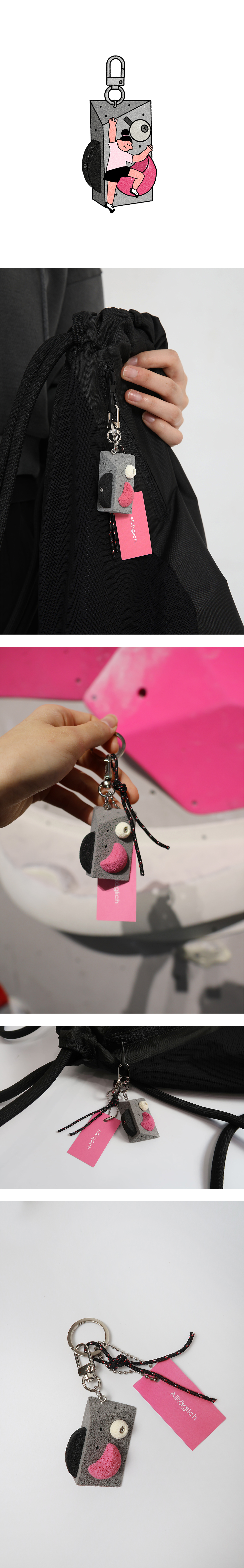 VOLUME HOLD KEYRING은 클라이밍에서 루트를 더 입체적이고 창의적으로, 때론 더 어렵고 재밌게 만들어주는 볼륨 홀드에서 영감을 받아 제작되었습니다. 미니 루트 한 조각! 크고 작은 홀드들이 만들어내는 귀여운 조합으로 볼더링의 감각을 손안에서 느껴보세요!