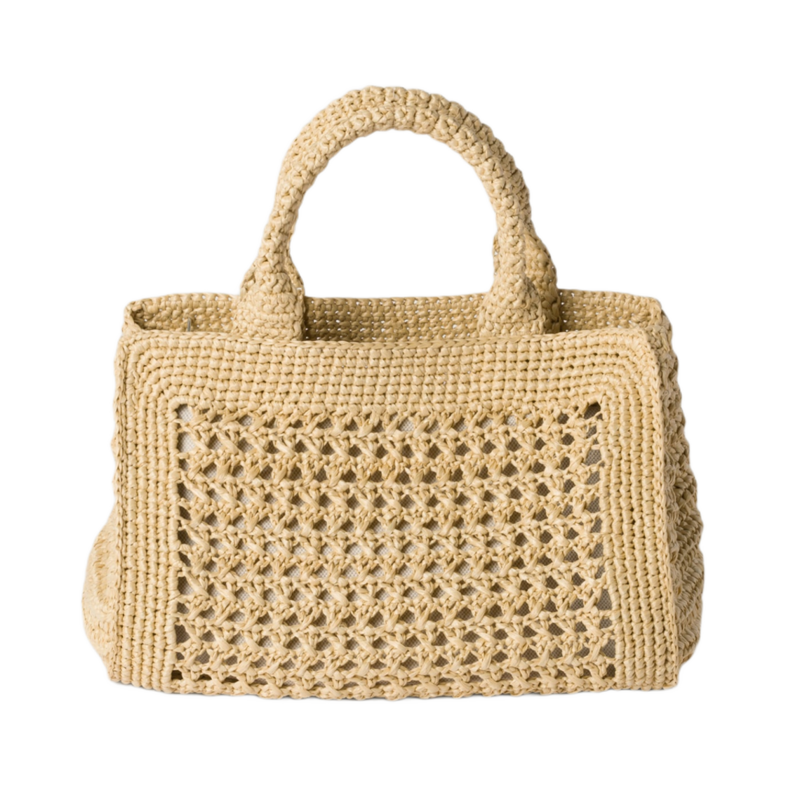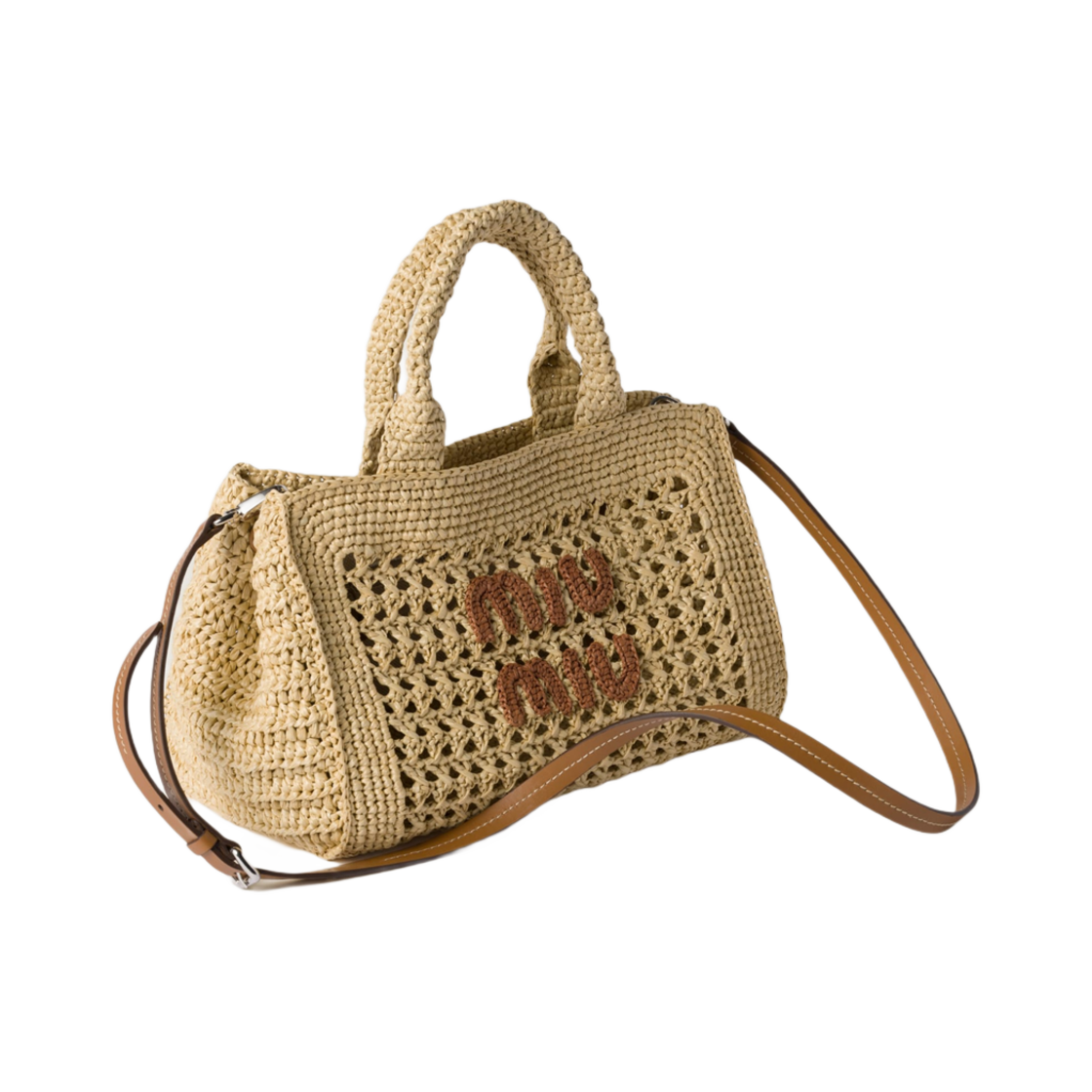 Miu Miu Raffia Effect Woven Handbag Beige Cognac