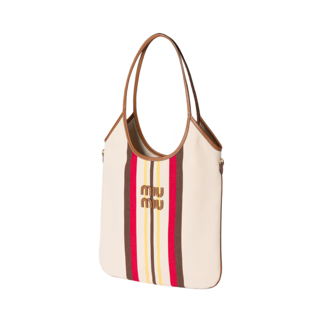 Miu Miu Canvas and Leather Ivy Bag Beige Dark Brown