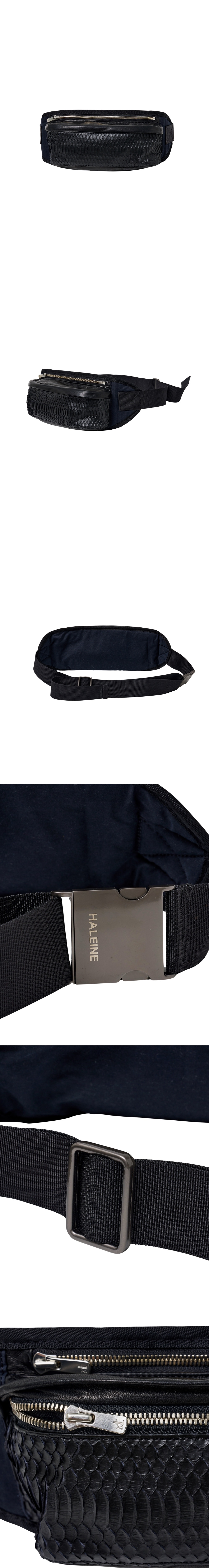 텍스처가 도드라지는 파이톤 레더를 전면에 사용해 시각적인 임팩트를 더한 벨트 백입니다. 불필요한 디테일을 배제한 컴팩트한 실루엣에, 볼드한 지퍼와 조절 가능한 웨빙 스트랩을 더해 실용성과 스타일을 동시에 만족시킵니다. 바디는 텍스처가 다른 매트한 패브릭으로 구성되어 전체적으로 입체감 있는 소재 대비가 돋보입니다. 허리에 착용하거나, 숄더 또는 크로스 형태로 연출이 가능한 유연한 핏으로 구성되어 다양한 스타일링에 활용할 수 있습니다. - DETAIL - 전면 파이톤 레더 소재 메탈 지퍼 클로징 스트랩 길이 조절 가능