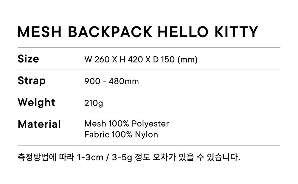조셉앤스테이시 메쉬 백팩 헬로키티 레드 화이트