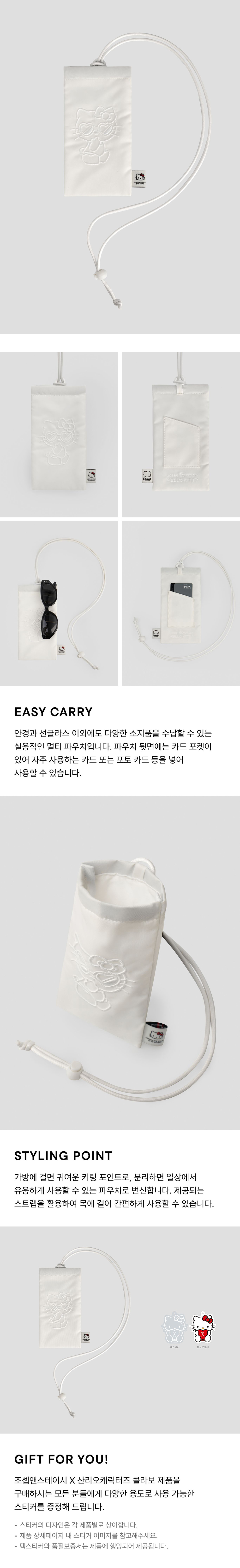 조셉앤스테이시 럭키 헬로키티 네크리스 글래시스 파우치 화이트