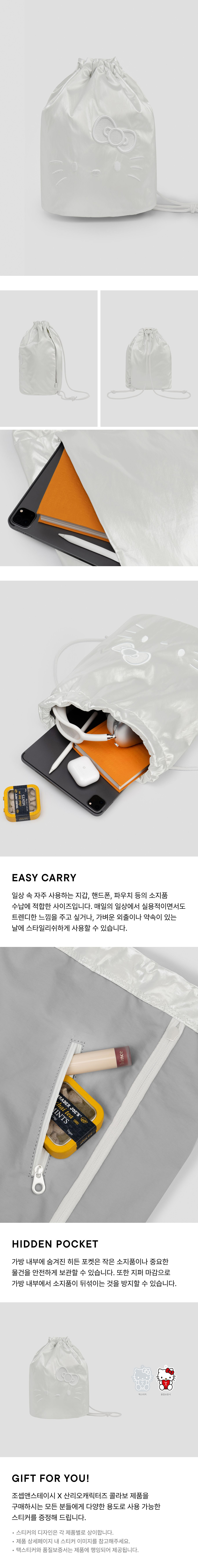 조셉앤스테이시 슬릭 스트링 백팩 헬로키티 화이트