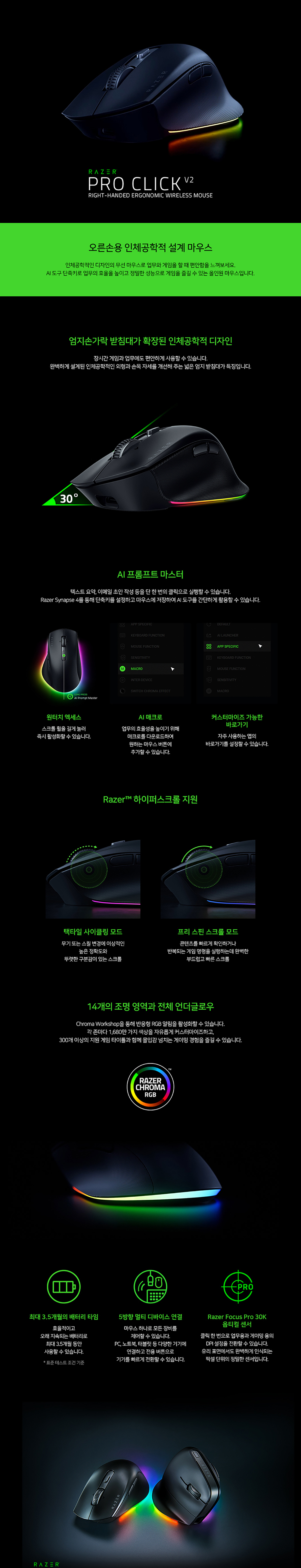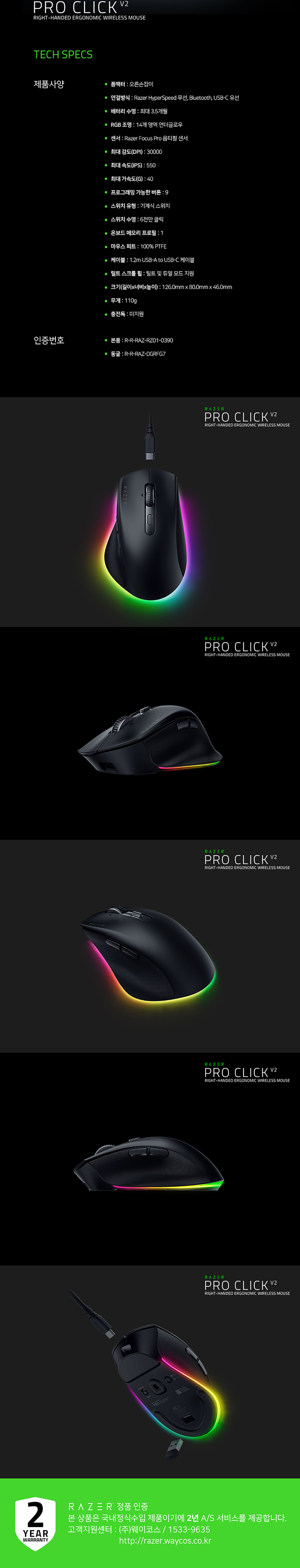 레이저 프로클릭 V2 인체공학 게이밍 마우스