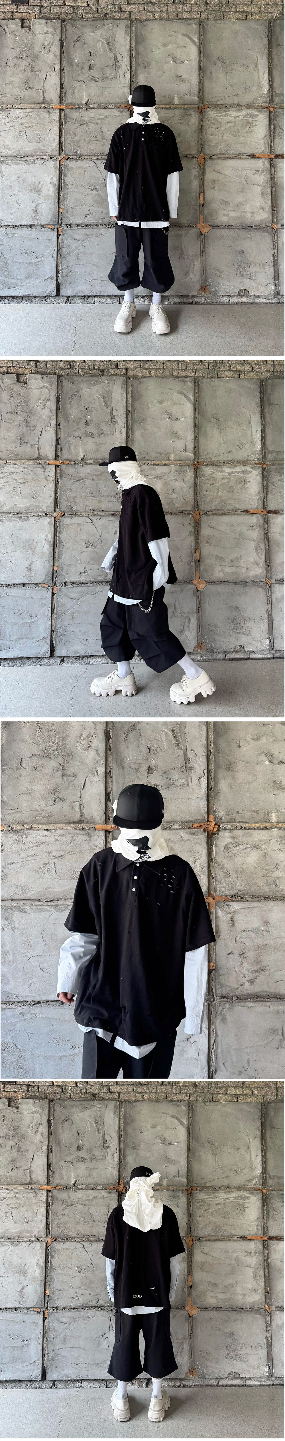 Fabric : 100% Cotton - 오버 핏 - 20's PK - 바이오 워싱 - 자개 단추 - 후면 레터링 프린트 - 핸드메이드 디스트로이드 작업 • 제조국 : 대한민국 • 세탁 방법 : 찬물 세탁 권장, 건조기 사용 금지 • 핸드메이드 제품으로 워싱 및 효과는 제품마다 상이 할 수 있음 Size Guide (단위 CM) M : 어깨 59, 가슴 78, 소매 26, 총장 78 L : 어깨 61, 가슴 81, 소매 27, 총장 80