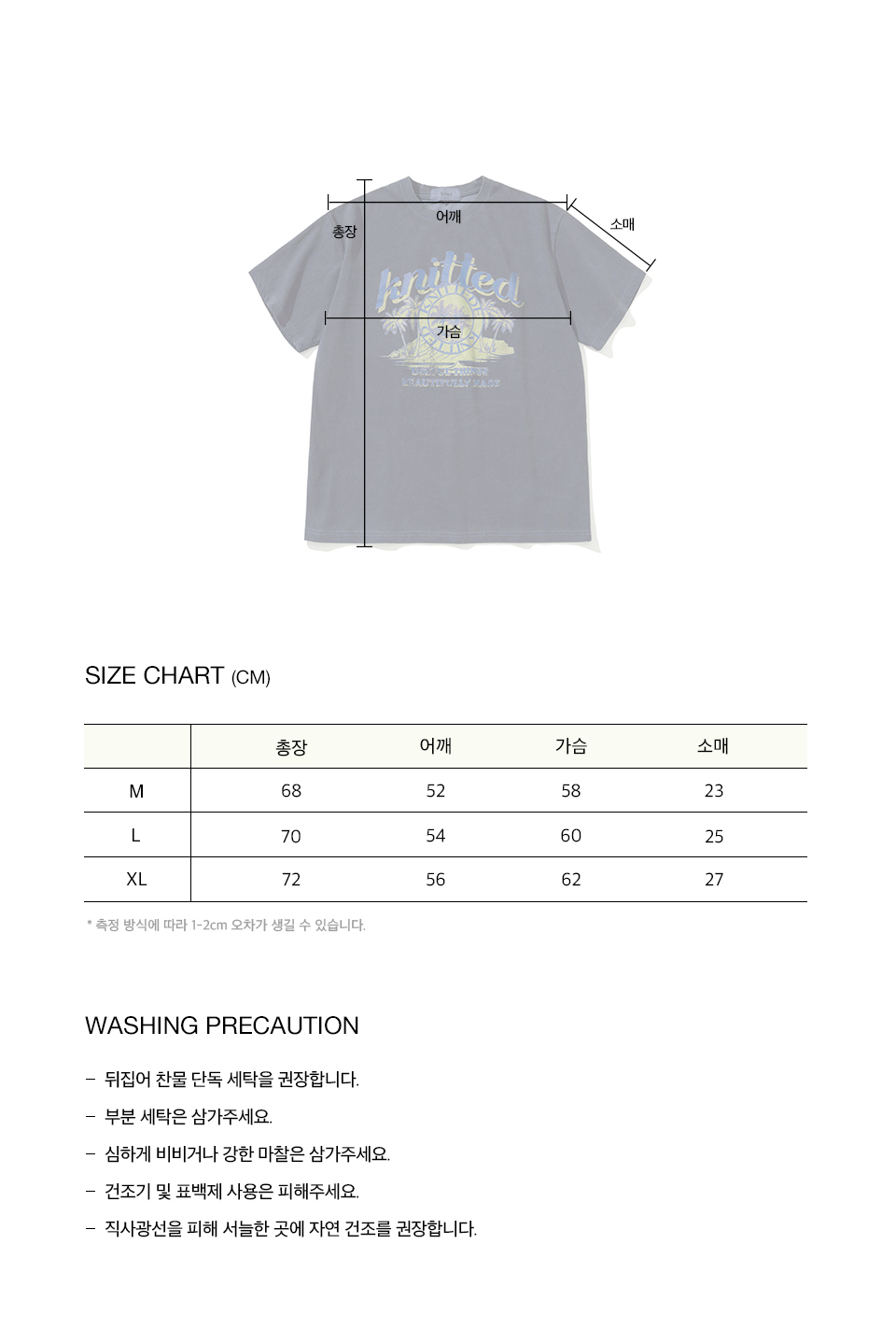 레터링이 어우러진 야자수 그래픽을 전면에 배치하여 유니크한 무드를 더한 반팔 티셔츠입니다. 피그먼트 워싱 가공으로 빈티지한 컬러감이 멋스러우며 릴랙스 핏으로 제작되어 자연스러운 실루엣을 연출해 줍니다. 촘촘하게 짜인 코튼 폴리 혼방 원단으로 부드러우며 땀을 빠르게 흡수하고 건조하는 흡한속건 기능의 안감으로 편안하고 쾌적하게 착용 가능합니다. - 피그먼트 가공 특성상 물 빠짐 및 이염이 발생할 수 있으므로 반드시 찬물 단독 세탁해 주시기 바랍니다. 부분 세탁 및 물티슈로 닦는 행동은 삼가주시고 땀에 젖었을 경우 즉시 세탁을 권장합니다. 밝은 색상 의류와 착용은 피해주시기 바랍니다.