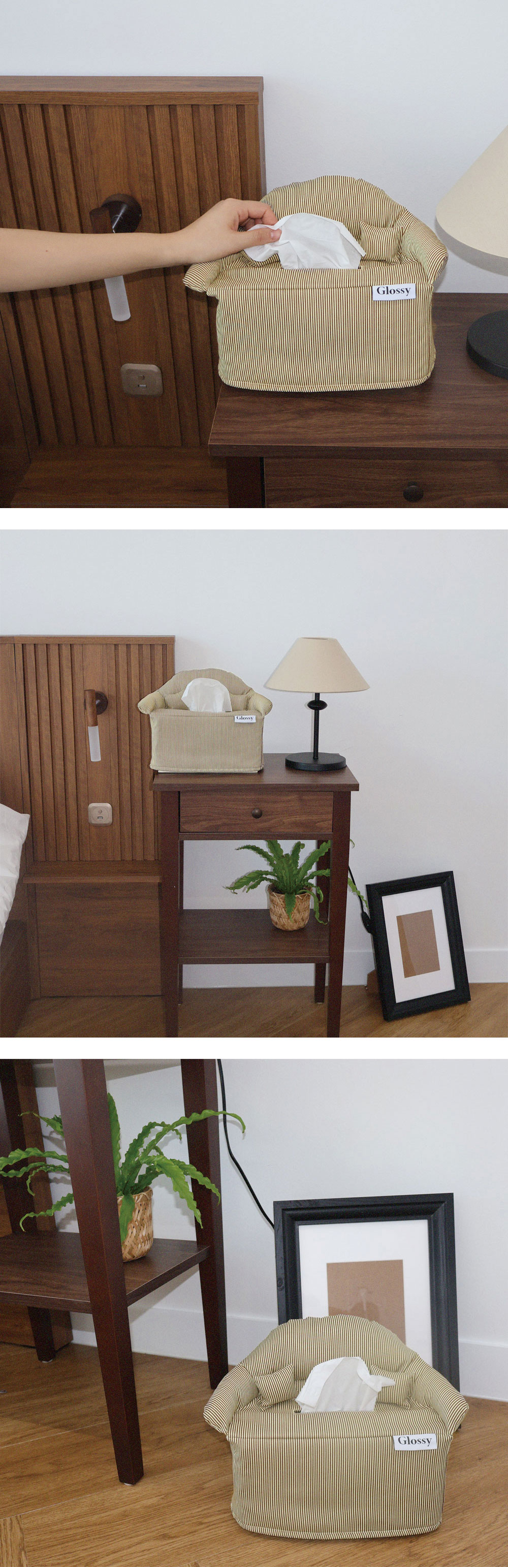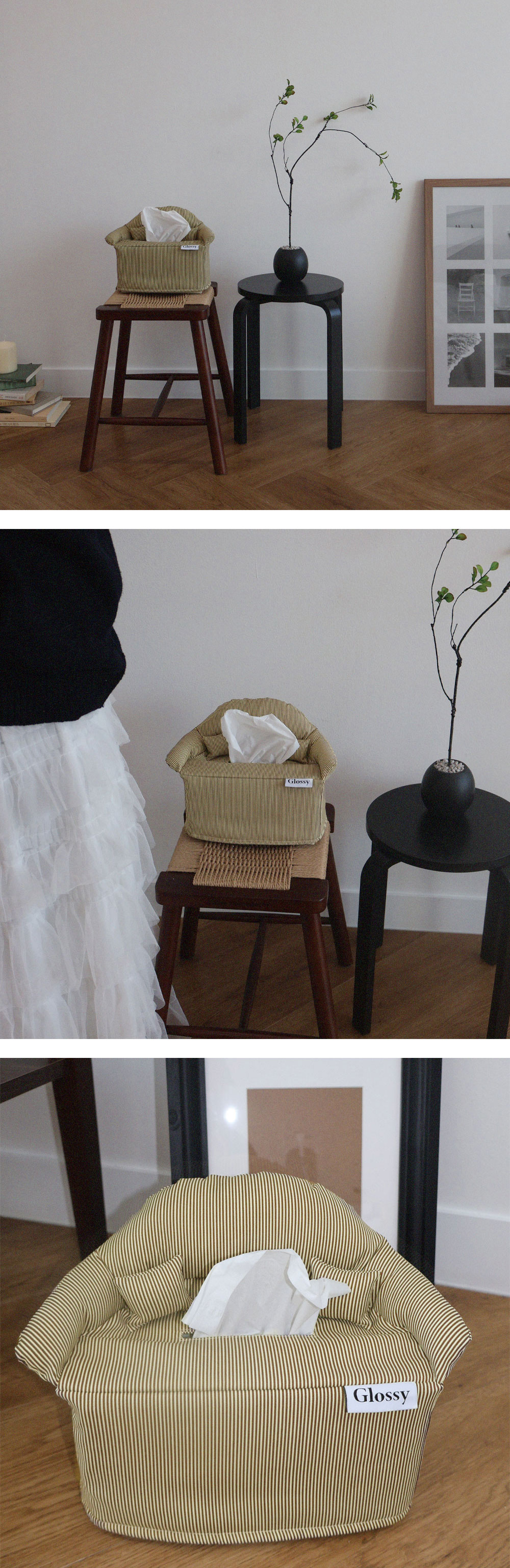 일상에 달콤함을 줄 소파 모양의 티슈 커버입니다. 일반적으로 사용하는 휴지(높이 12cm/가로 23cm/폭 11.5cm)에 적합합니다. 휴지에 간단하게 씌워서 사용하실 수 있습니다. 정확한 사이즈는 상세페이지 참조 부탁드립니다. 원단: 면 65% 나일론 32% 폴리우레탄 3% * 제품과 함께 동봉되는 세탁법 카드를 꼭 참조하여 세탁해주세요.