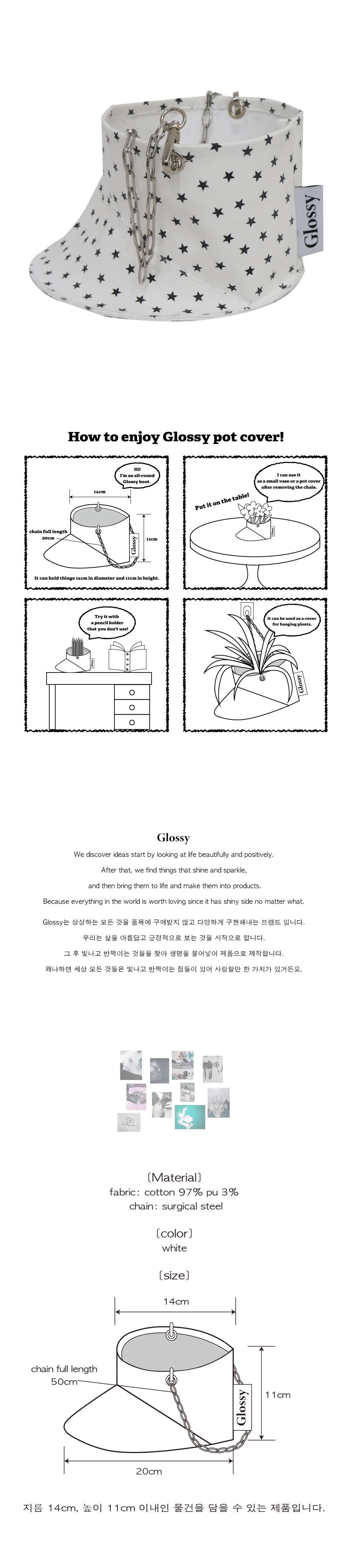 글로시 빈티지 스타 부츠 팟 커버 화이트