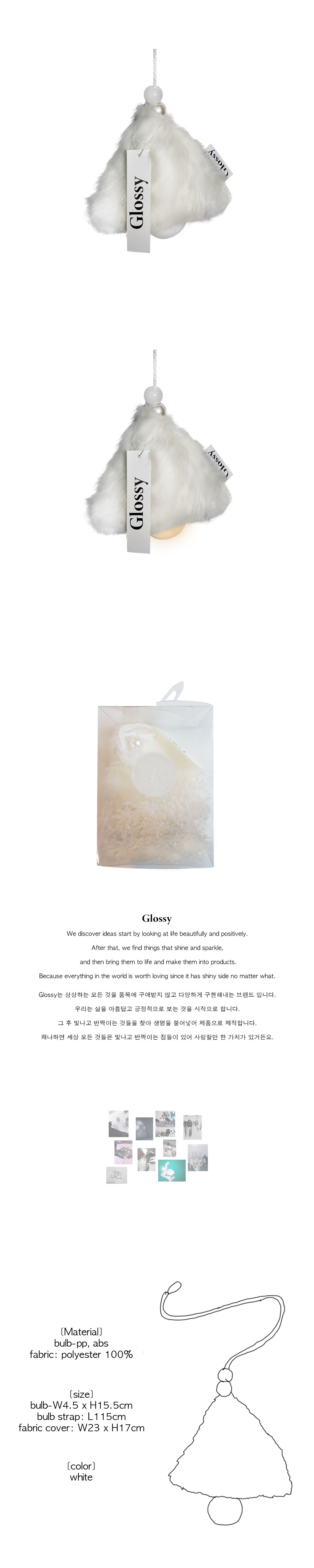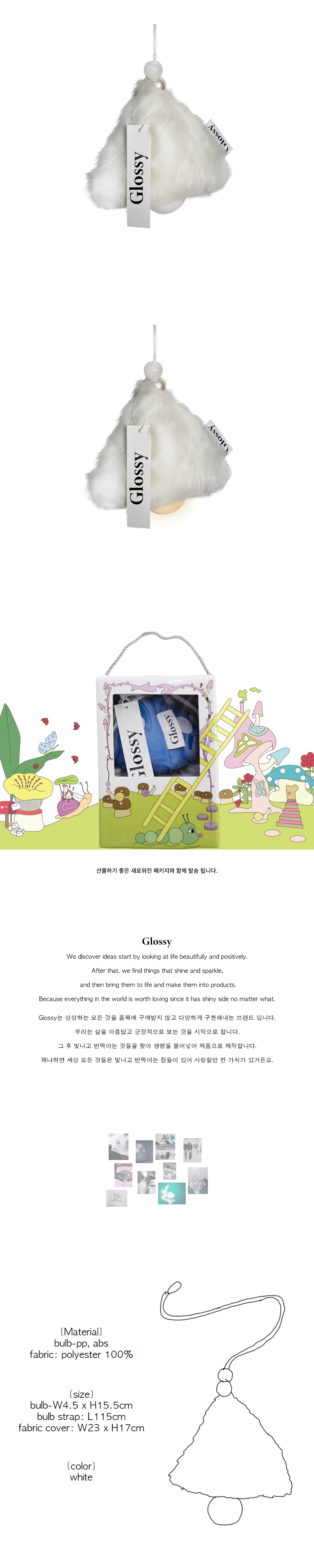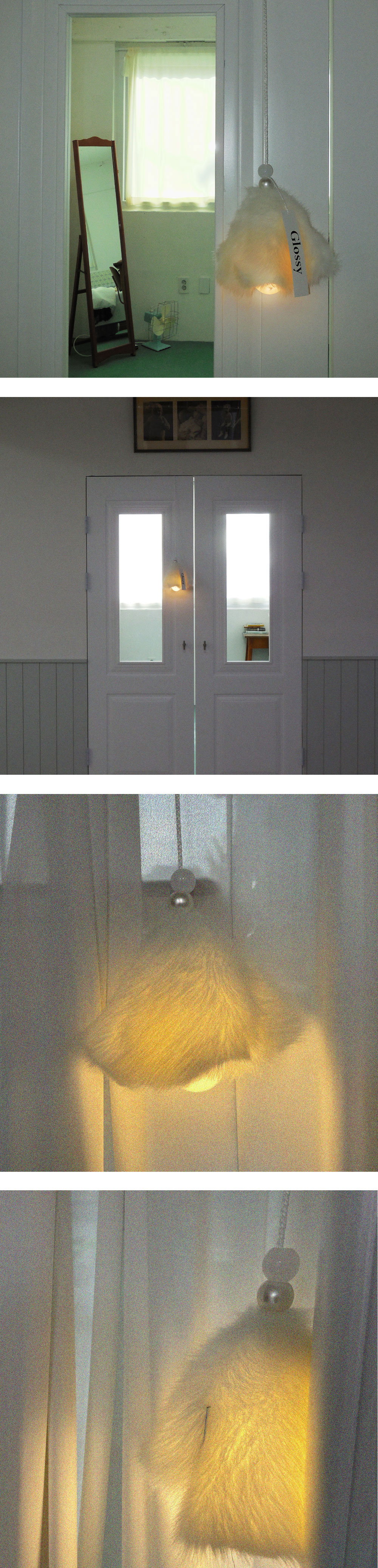 aaa 건전지를 넣어 사용하는 팬던트 조명입니다. (건전지 미포함 상품이니 참조 부탁드립니다.) 원하는 위치에 간편하게 설치가능하고 줄을 잡아당겨 조명을 킬 수 있습니다. 화이트 컬러의 퍼가 모던하고 감각있는 무드를 선사합니다. 침실이나 어두운 곳에 두어 주위를 따뜻하게 밝혀보세요! 크기: 4.5cm*15.5cm, 끈 길이: 115cm 전구: pp, abs(건전지 미포함) 원단: 폴리 100% * 가벼운 털빠짐이 있는 제품입니다. * 세탁 불가한 제품 입니다. * 털이 구겨졌을 경우 빗으로 살살 빗어 정리해주세요. * 열에 닿았을 때 원단 특성상 털 변형이 생길 수 있으니 주의해주세요.