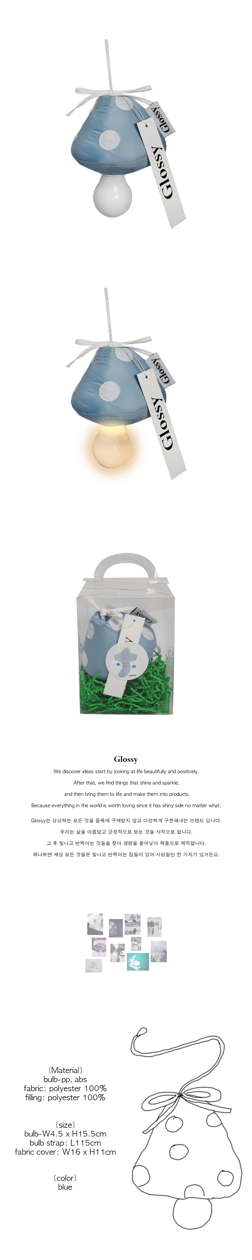 aaa 건전지를 넣어 사용하는 버섯 모양팬던트 조명입니다. (건전지 미포함 상품이니 참조 부탁드립니다.) 원하는 위치에 간편하게 설치가능하고 줄을 잡아당겨 조명을 킬 수 있습니다. 잘 자란 버섯 수확해 가세요!🍄 램프 크기: 4.5cm*15.5cm, 끈 길이: 115cm 버섯 크기: 16*11cm 전구: pp, abs(건전지 미포함) 원단: 폴리 100% 충전재: 폴리 100% * 제품과 함께 동봉되는 사용법 카드를 꼭 참조해 사용해주시고, 세탁 해주세요.aaa 건전지를 넣어 사용하는 버섯 모양팬던트 조명입니다. (건전지 미포함 상품이니 참조 부탁드립니다.) 원하는 위치에 간편하게 설치가능하고 줄을 잡아당겨 조명을 킬 수 있습니다. 잘 자란 버섯 수확해 가세요!🍄 램프 크기: 4.5cm*15.5cm, 끈 길이: 115cm 버섯 크기: 16*11cm 전구: pp, abs(건전지 미포함) 원단: 폴리 100% 충전재: 폴리 100% * 제품과 함께 동봉되는 사용법 카드를 꼭 참조해 사용해주시고, 세탁 해주세요.