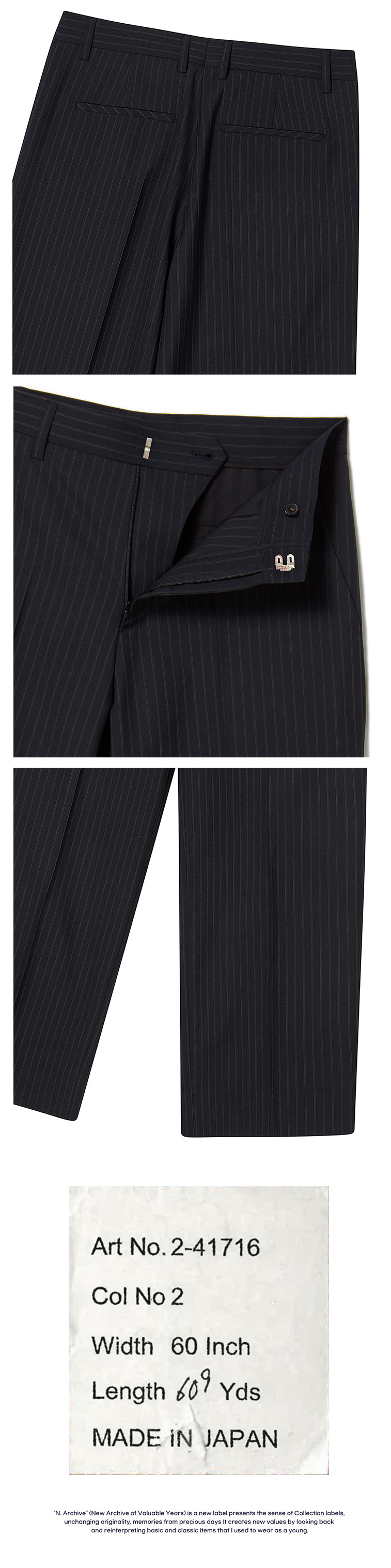 N ARCHIVE Japan Fabric Wool Stripe Pants Black