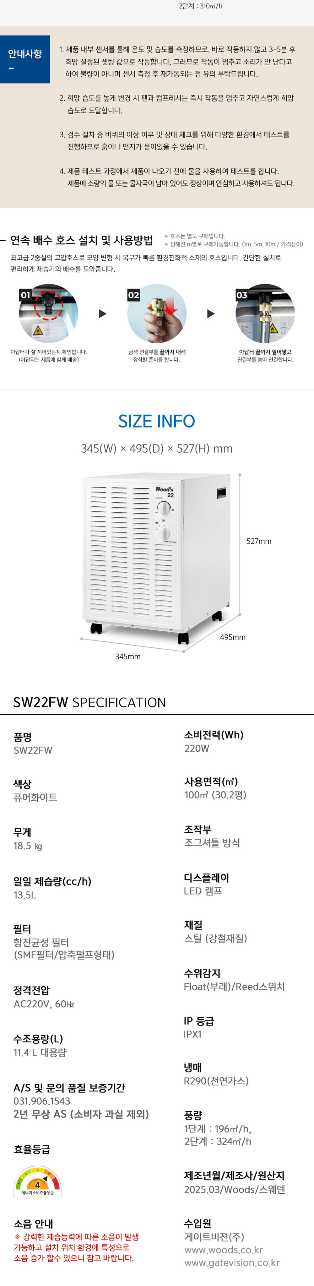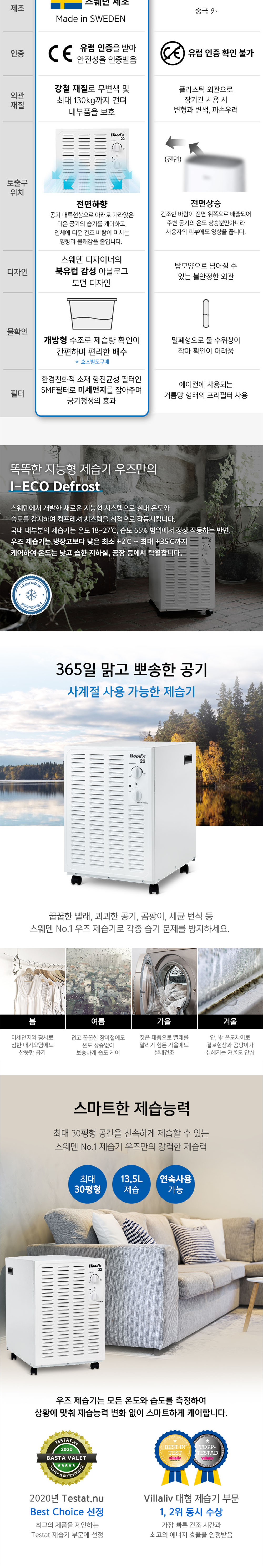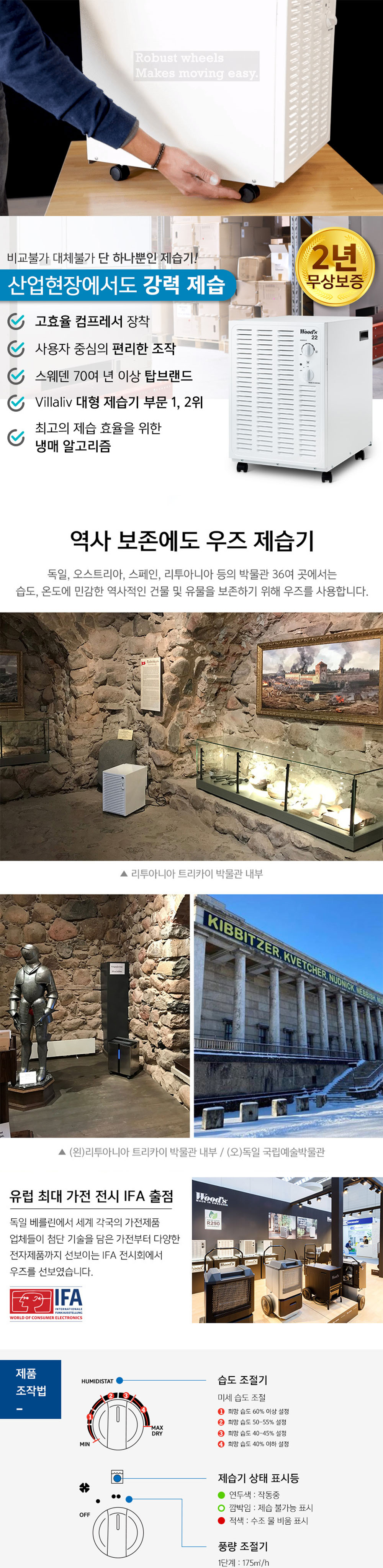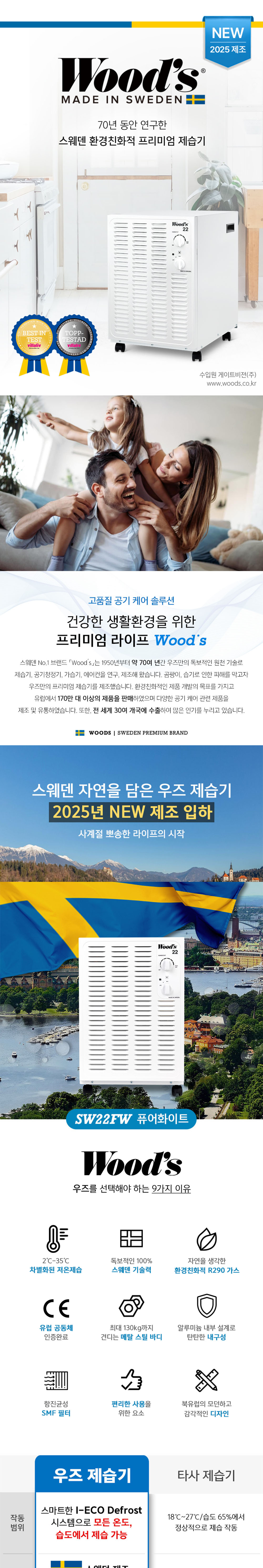 우즈 스웨덴 환경친화적 대용량 제습기 SW22FW 퓨어 화이트