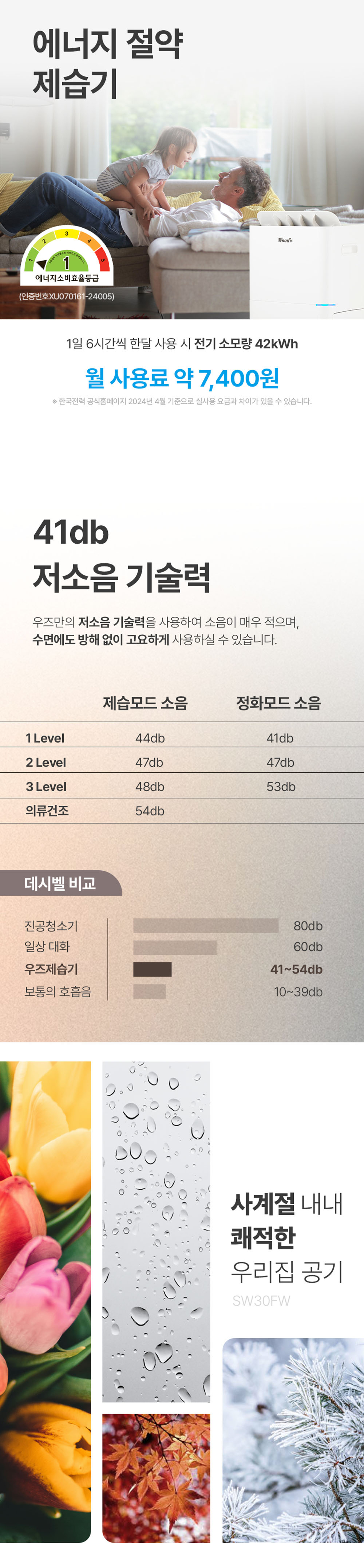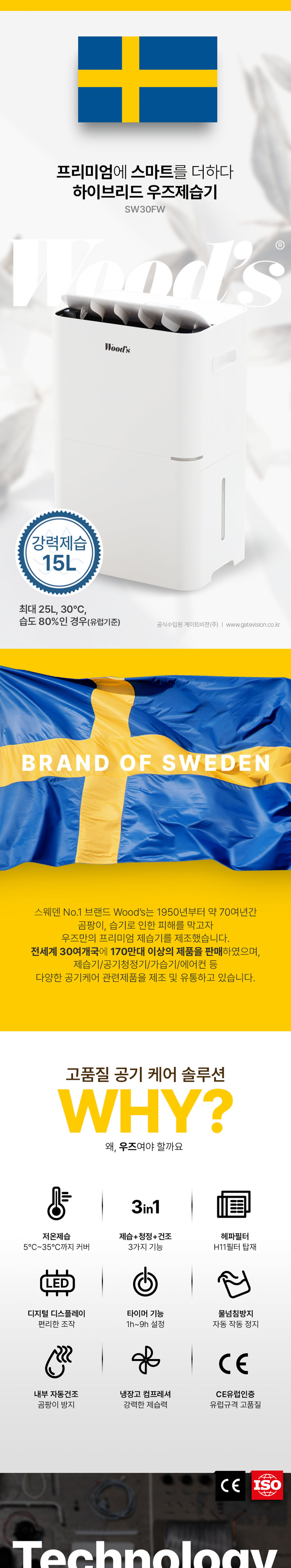 우즈 스웨덴 제습기 SW-30FW 가정용 퓨어 화이트