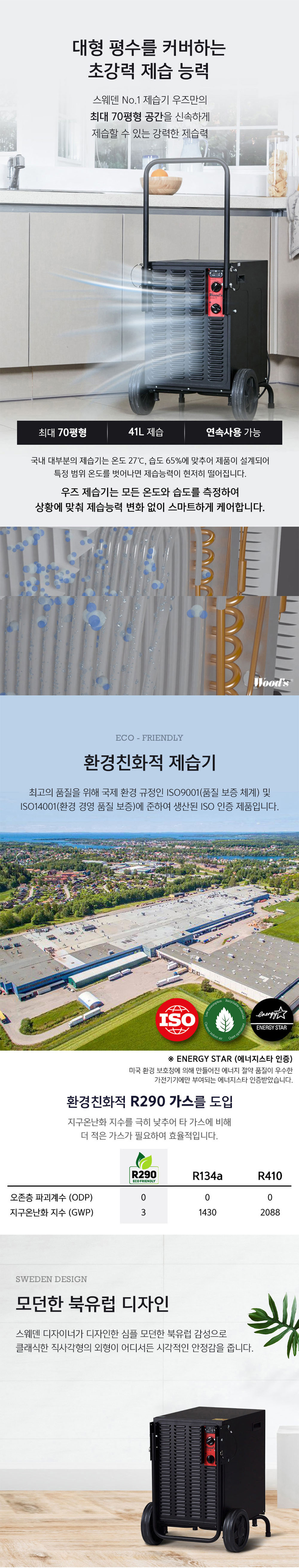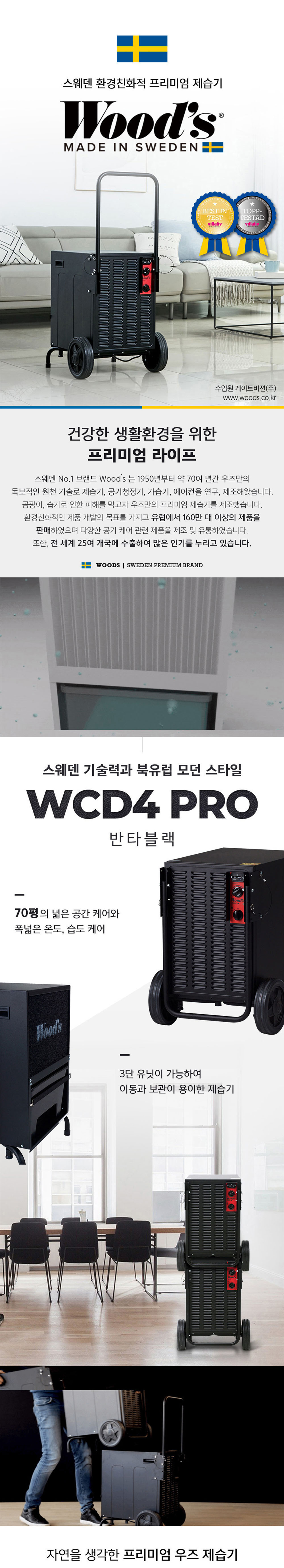 우즈 스웨덴 환경친화적 대용량 제습기 WCD4PRO 반타 블랙