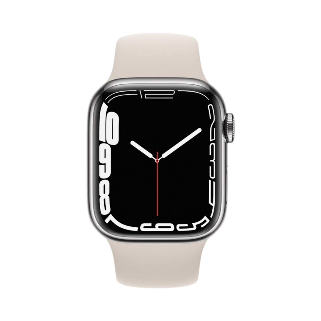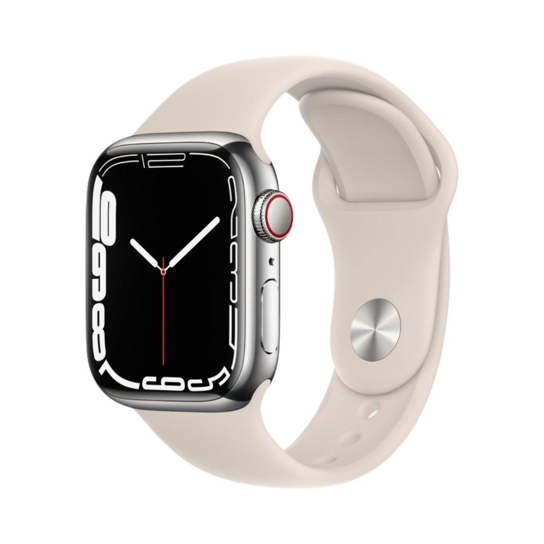 애플 워치 시리즈 7 41mm 셀룰러 실버 스테인리스 스틸 케이스 스포츠 밴드 스타라이트 (국내 정식 발매 제품)