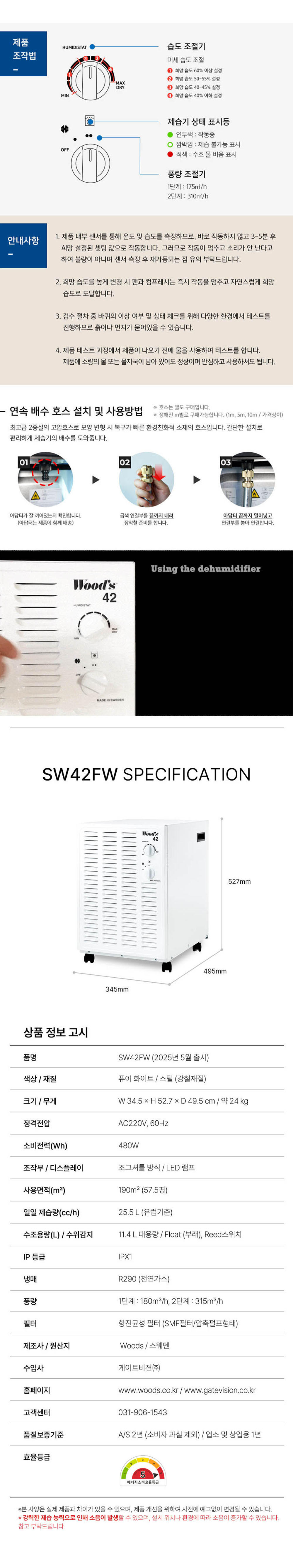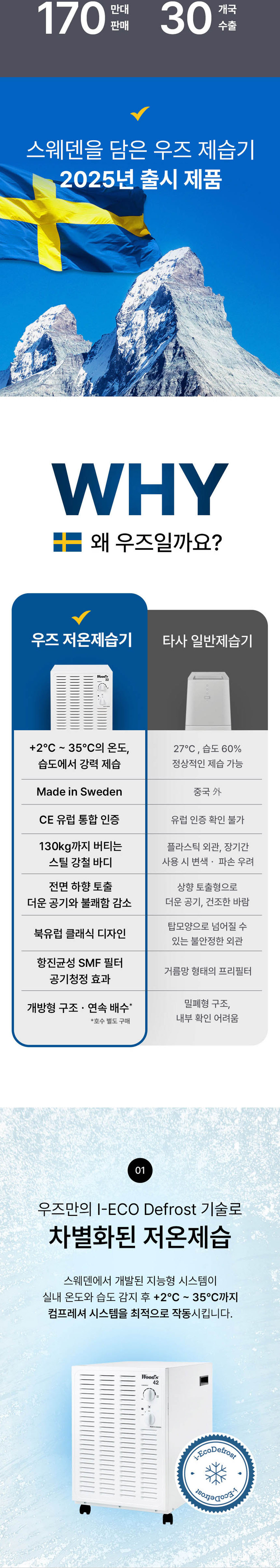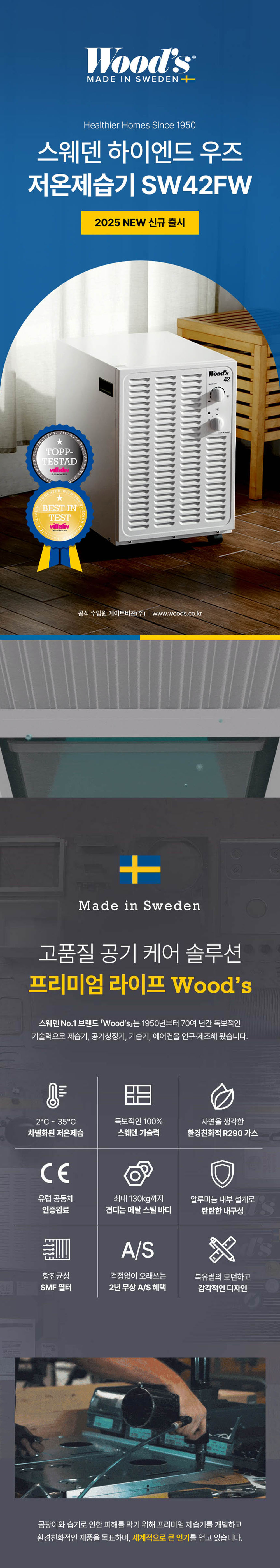 우즈 스웨덴 환경친화적 대용량 제습기 SW42FW 화이트