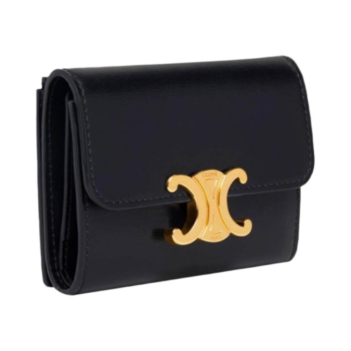 Celine Compact Wallet with Coin Triomphe in Shiny Calfskin Black