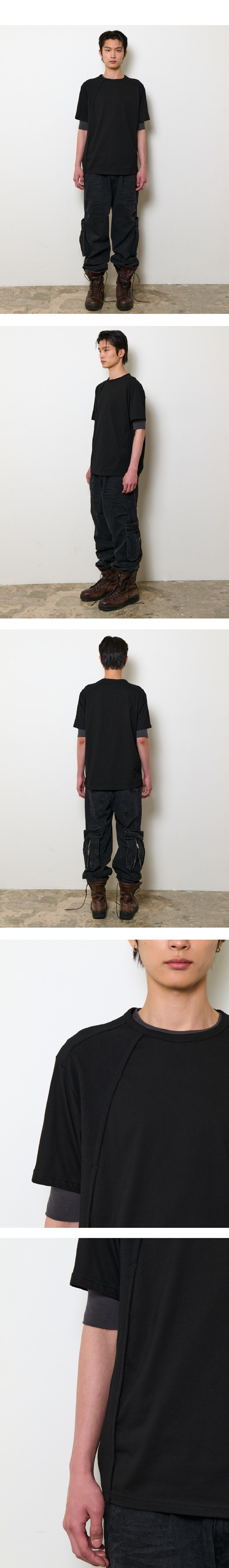 몸판 COTTON 100% 배색 COTTON 100% 와플 배색 원단 전면 후라쉬 디테일 앞,뒤 배색 Model : 185cm 63kg wearing L * 오랜기간 품질 유지를 위해 드라이클리닝 혹은 손세탁을 권장드립니다. * 디스플레이 사양과 해상도에 따라 제품 색상에 차이가 있을 수 있으며, 보다 정확한 제품의 색상은 상품 이미지 통해 확인 부탁드립니다.