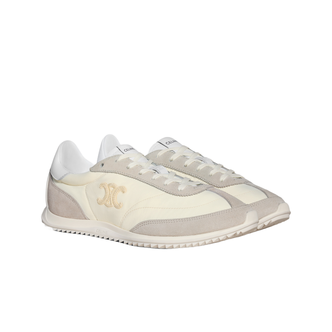 (W) Celine Racer Low Top Sneakers in Nylon Suede Calfskin and Calfskin Vanilla
