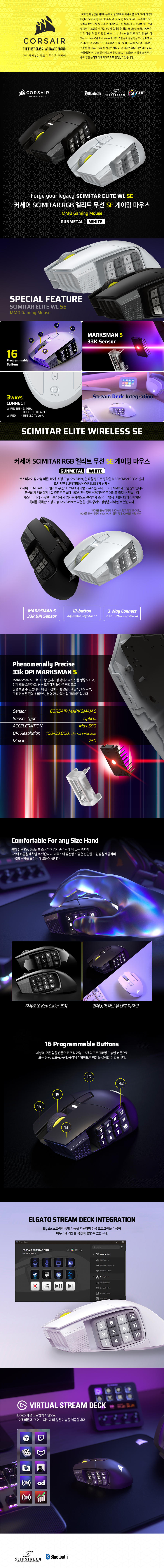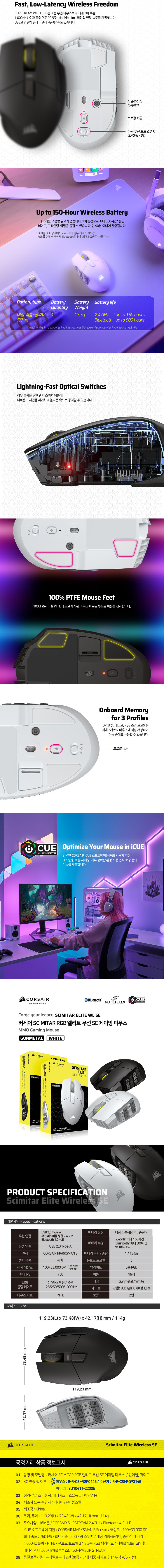 커세어 SCIMITAR RGB 엘리트 무선 SE 게이밍 마우스 화이트