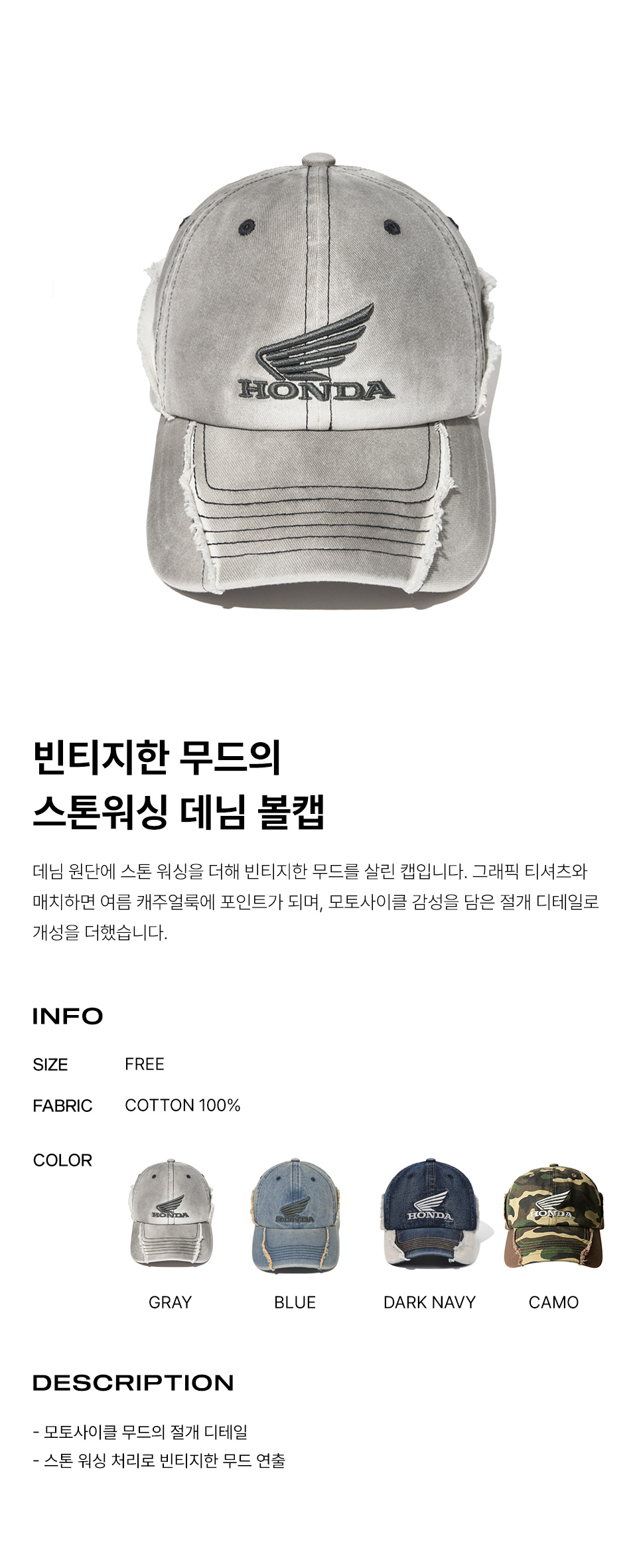 혼다 빈티지 컷오프 캡 그레이