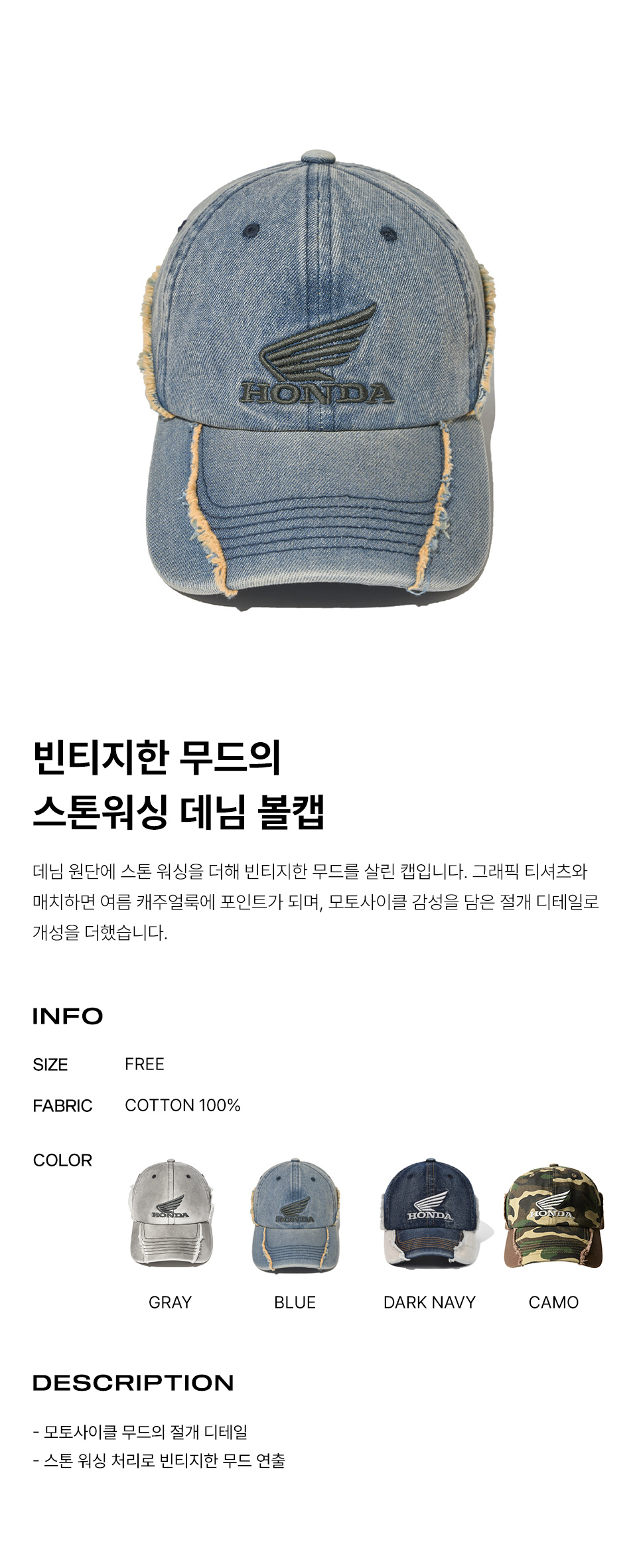 혼다 빈티지 컷오프 캡 인디고미디엄