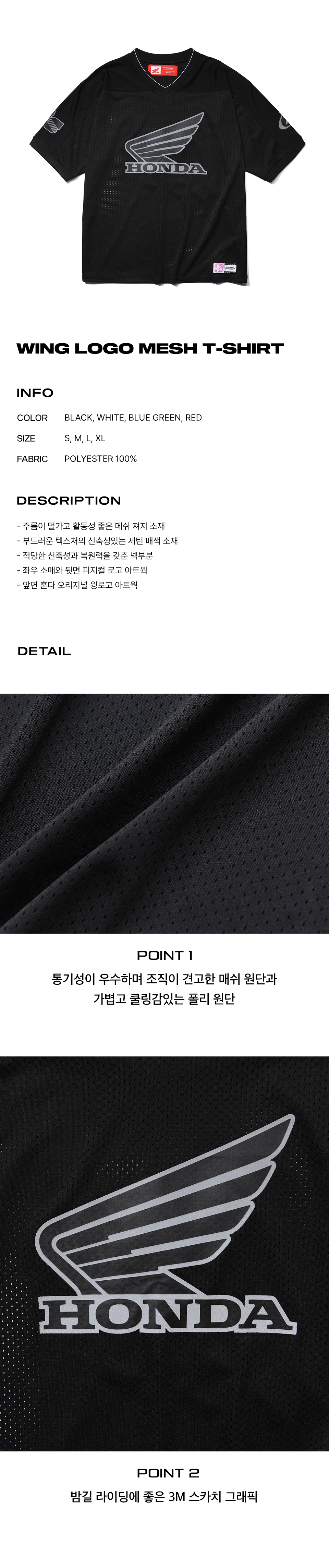 혼다 오리지널 윙 로고 메쉬 티셔츠 블랙
